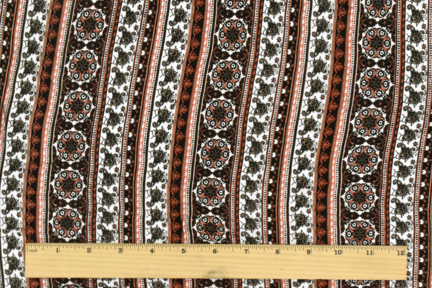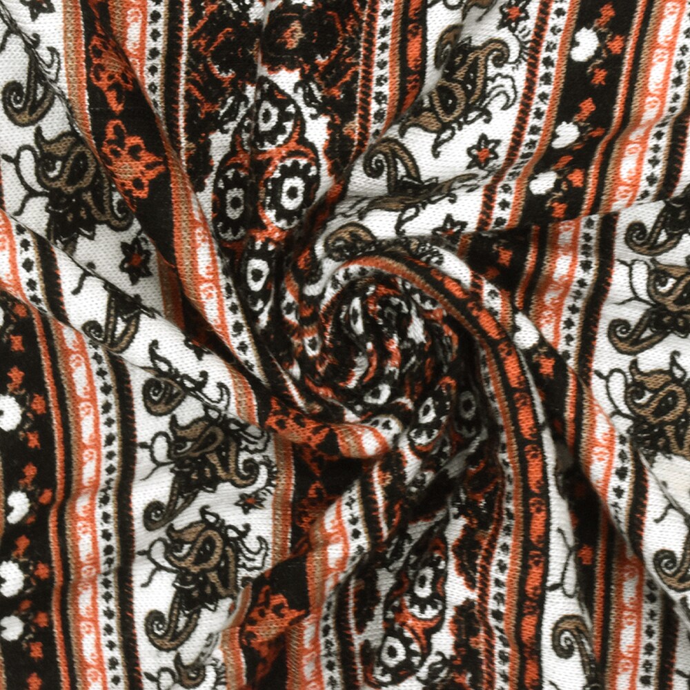White-Orange-Multi Moroccan Stripe Printed Rayon Stretch Jersey Knit Fabric By the Yard