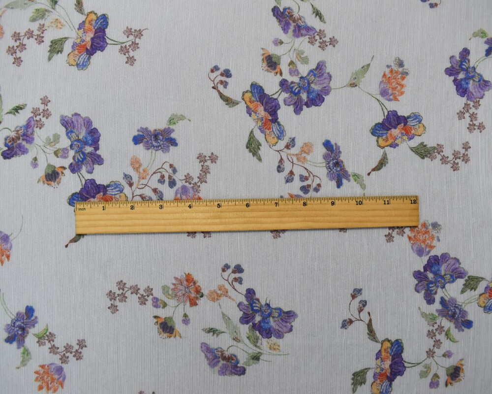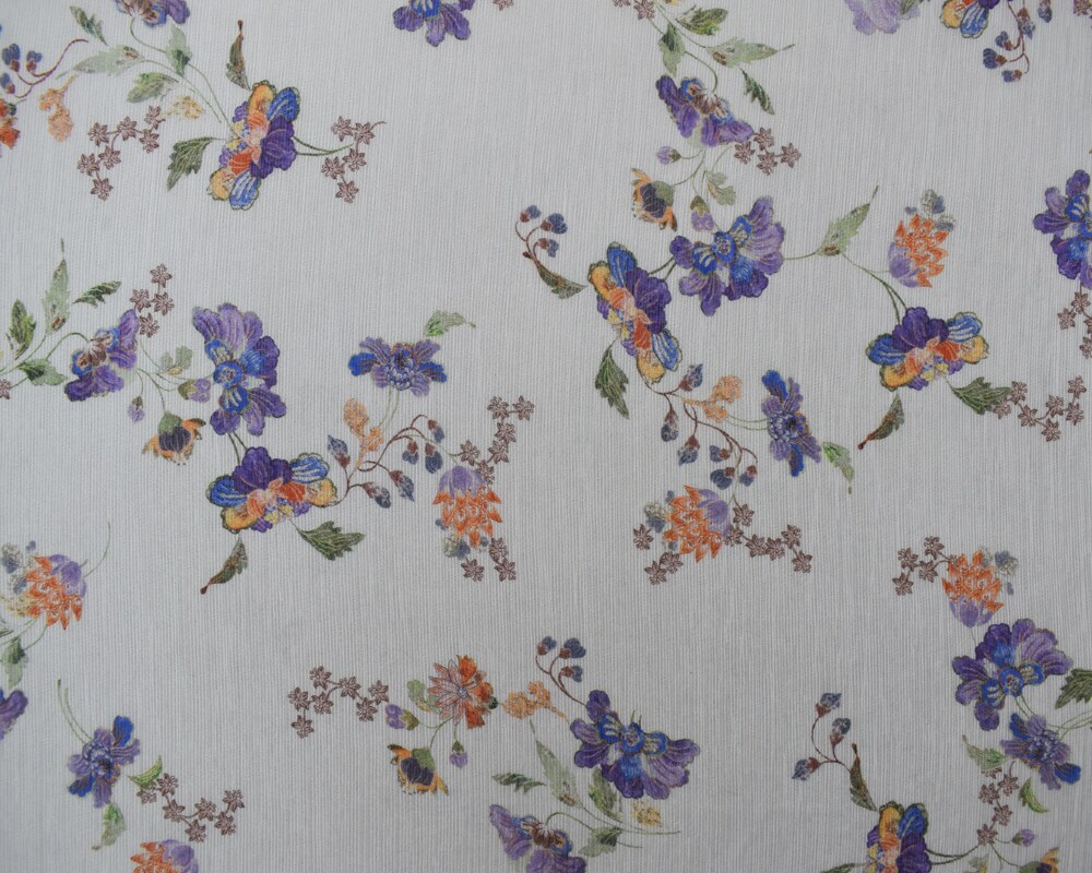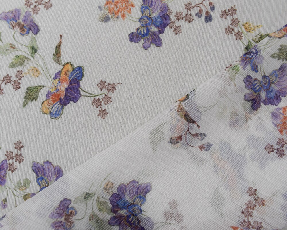 White-Purple-Multi Poly Floral Printed Dobby Chiffon Woven Fabric By the Yard