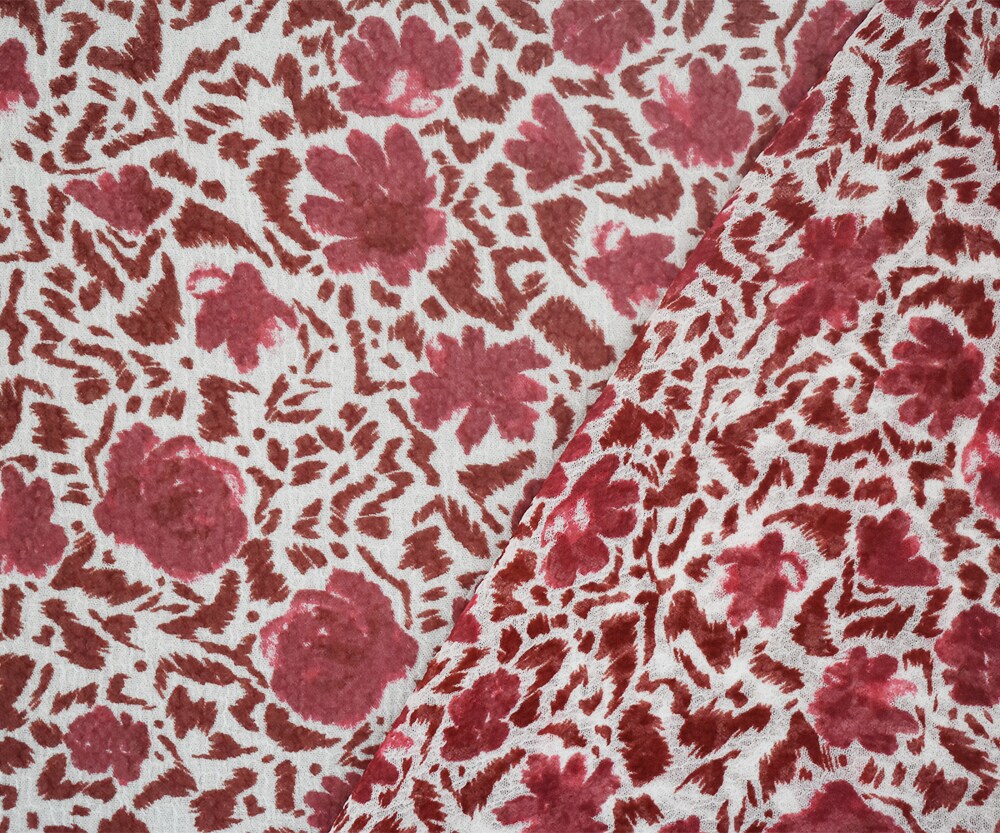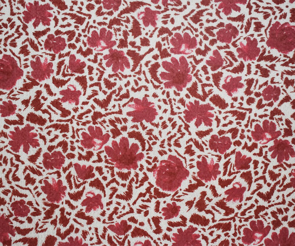 White-Red Abstract Floral Printed Poly Crinkled Chiffon Woven Fabric By the Yard