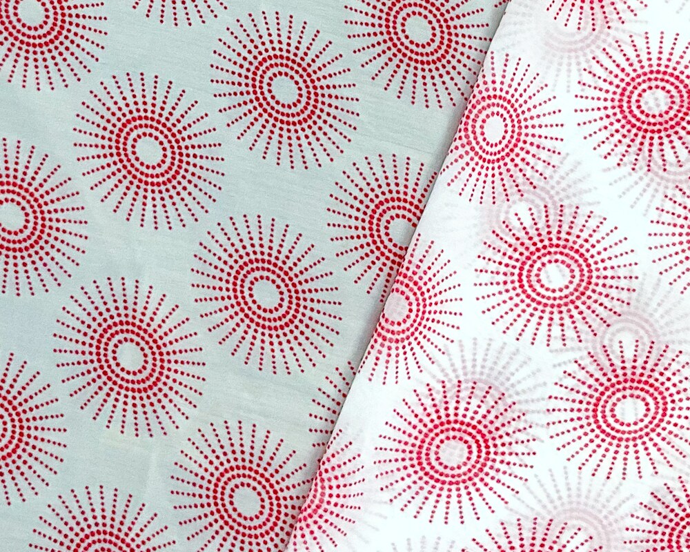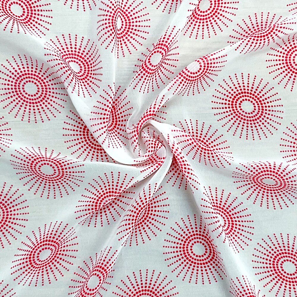 White-Red Poly Abstract Printed Chiffon Woven Fabric By the Yard