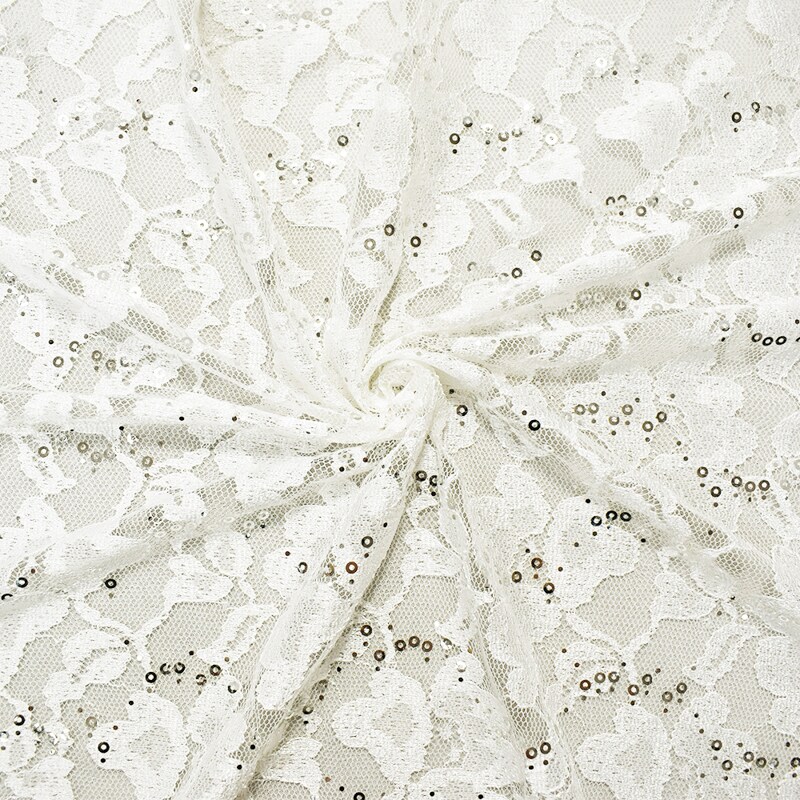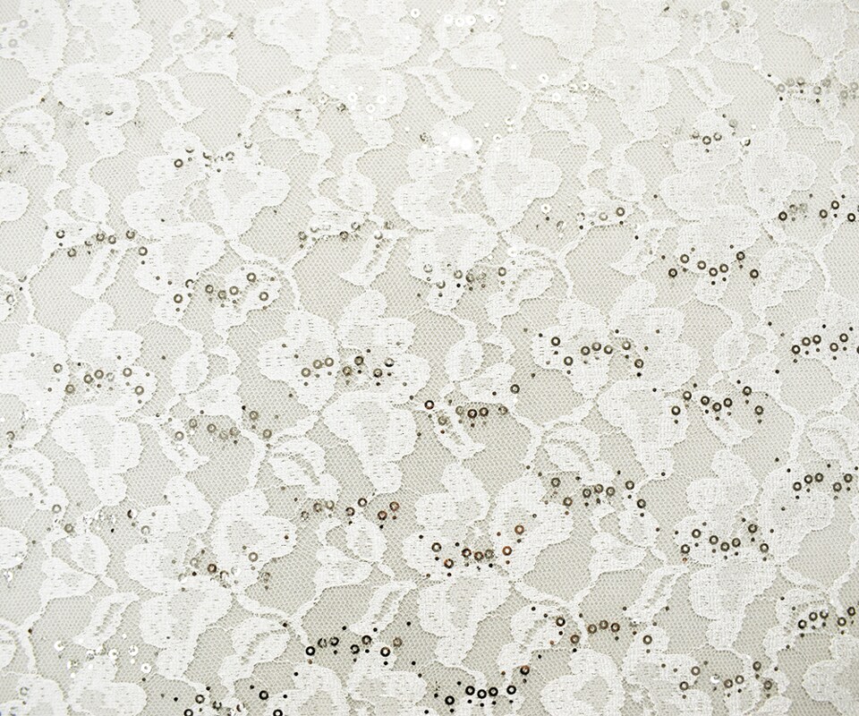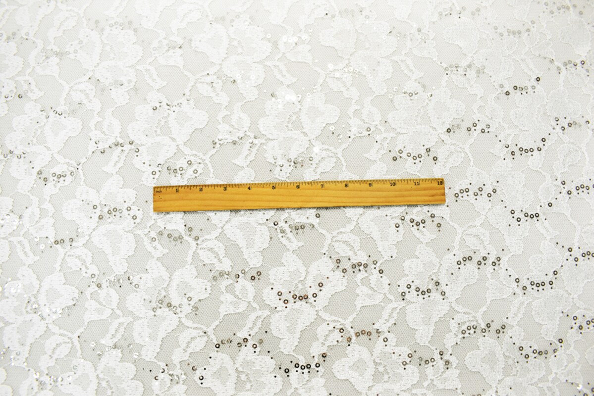 White-Silver Nylon-Polyester Floral Sequin Crochet Lace Knit Fabric By the Yard