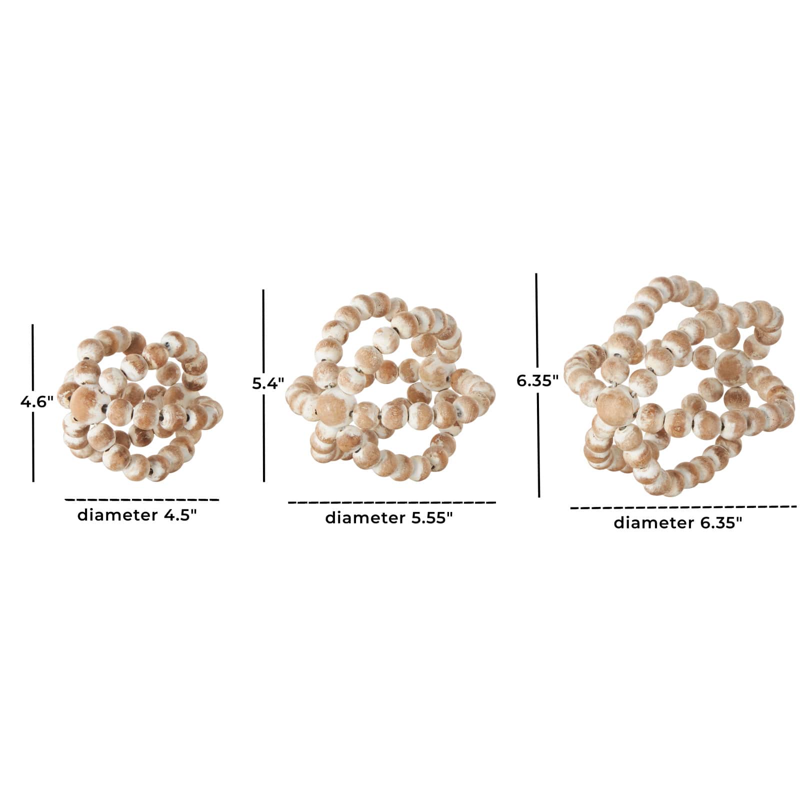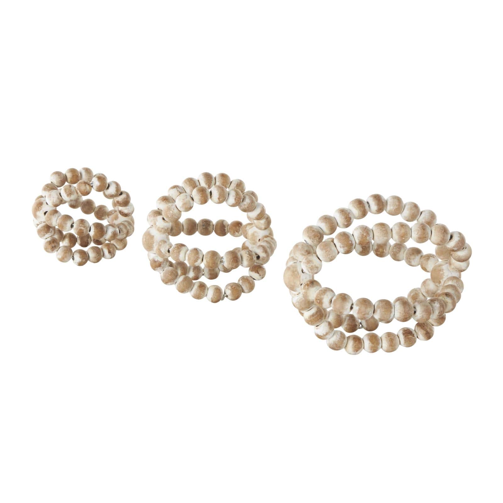 Whitewashed Brown Beaded Knot Wood Sculpture Set