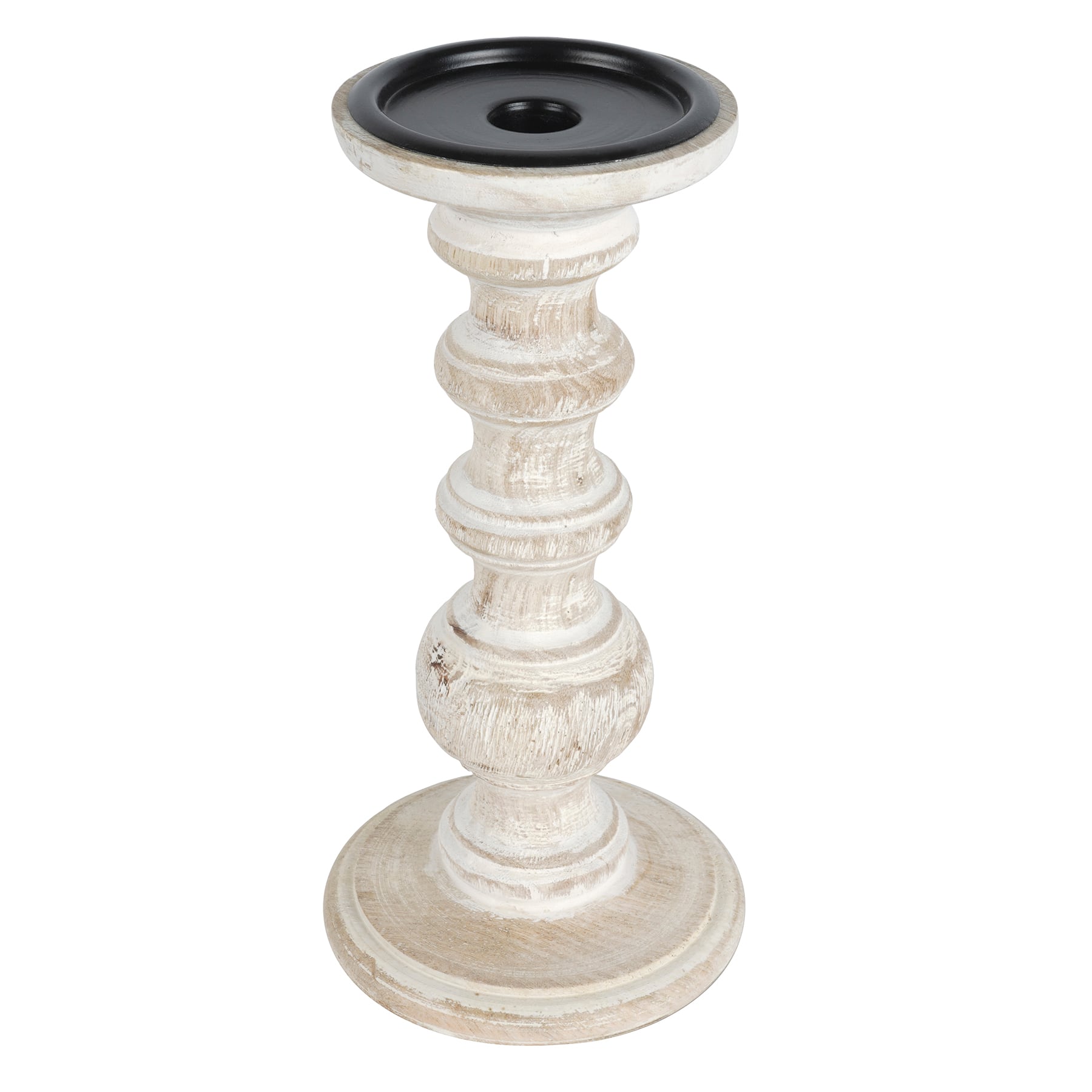 Whitewashed Wood Carved Pillar Candle Holder by Ashland®