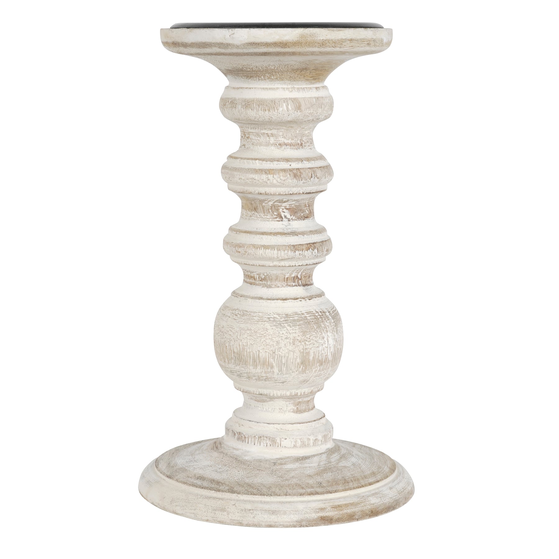 Whitewashed Wood Carved Pillar Candle Holder by Ashland®