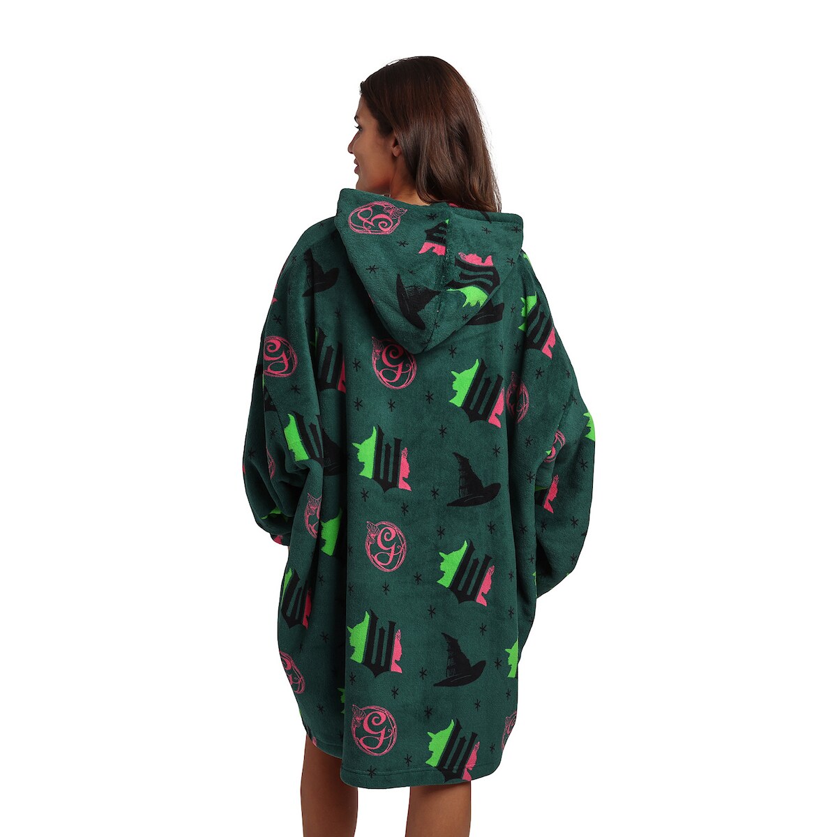 Wicked Part 1 Witch Hats & Glinda Seal All-Over Print Adult Green Long Sleeve Hooded Blanket