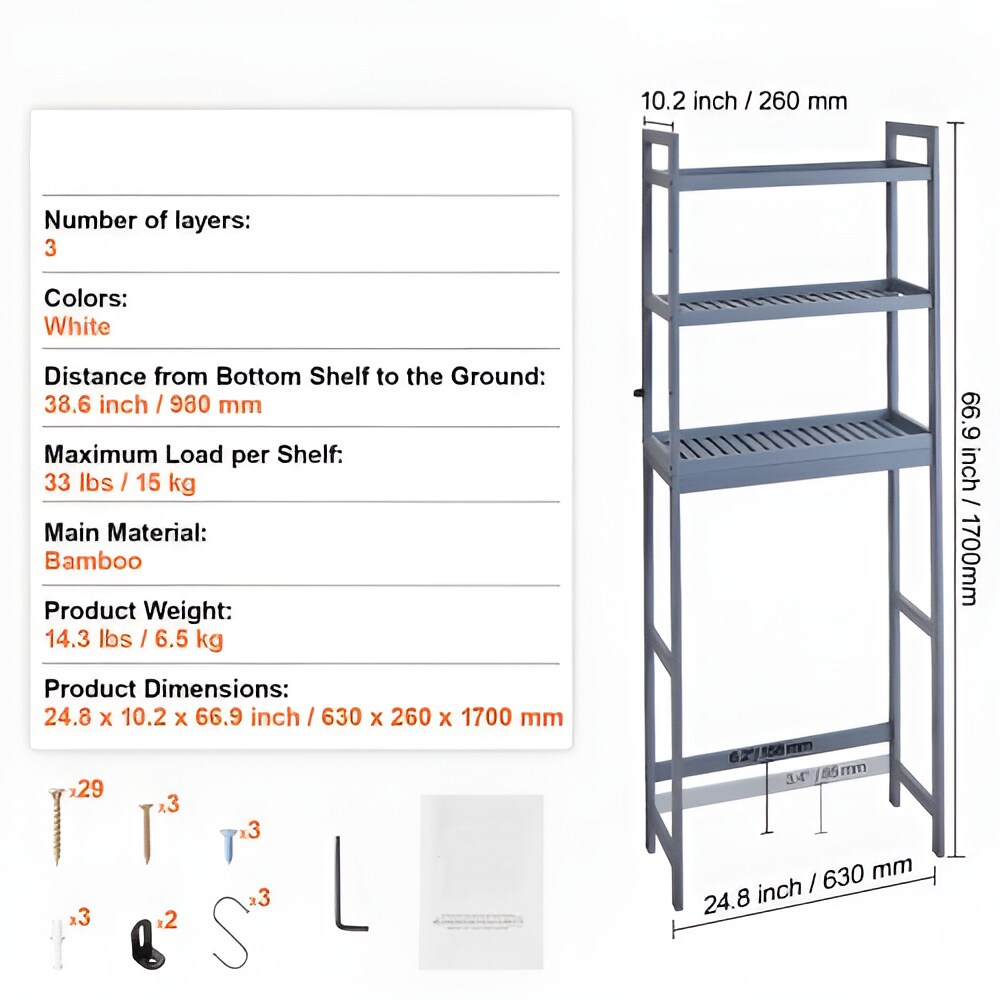 Wicker 3-Tier Over-Toilet Storage Rack with Adjustable Shelves