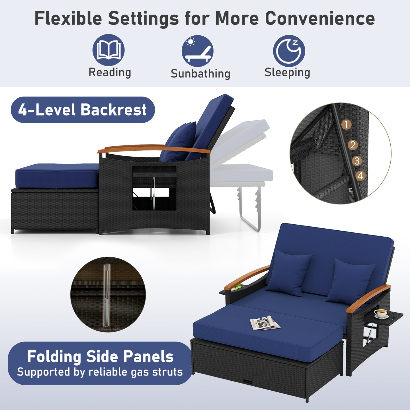 Wicker Outdoor Daybed with Folding Privacy Panels and Storage Ottoman