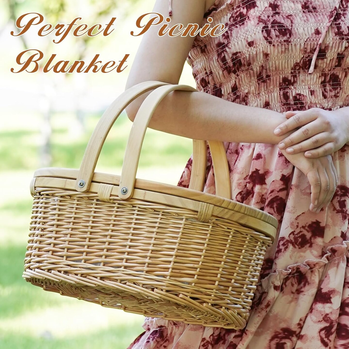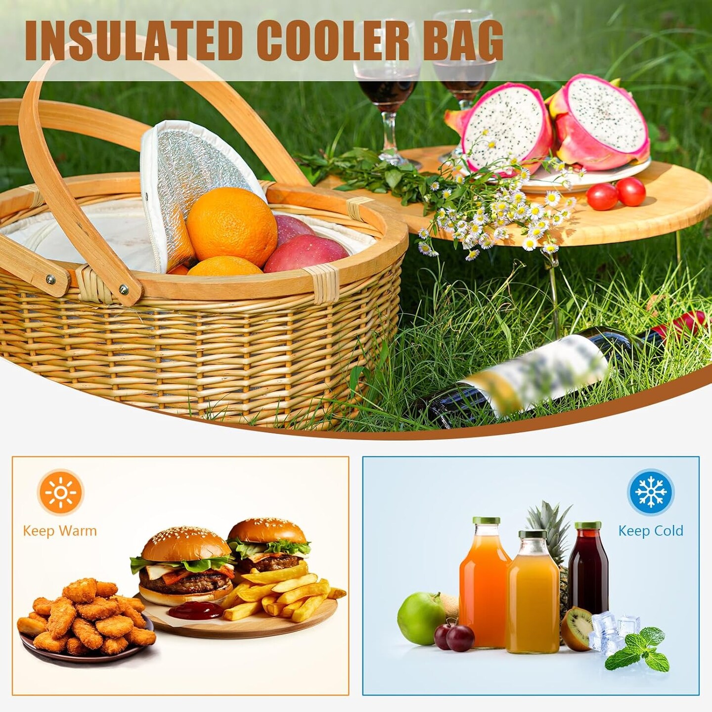 Wicker Picnic Basket for 2 with Table & Swing Handles, Picnic Baskte Set with Cooler for Beach, Camping, Park, Outdoor Party. Willow Picnic Basket Cooler Baskets for Wine Lover.