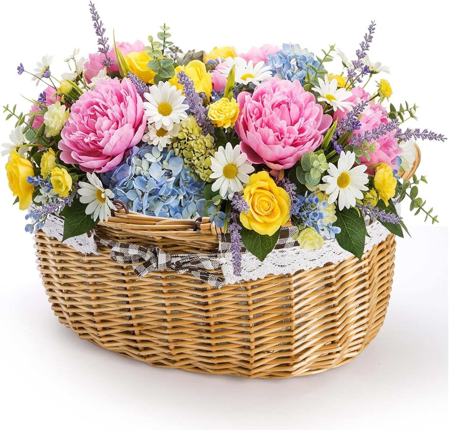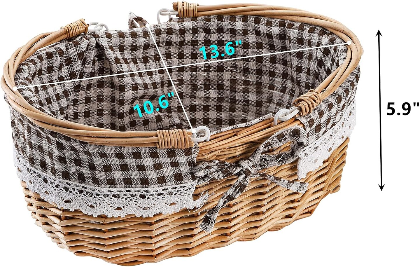 Wicker Picnic Basket with Double Folding Handles – Handmade Woven Basket for Gifts, Easter Eggs, Toys, Candy, Weddings & Outdoor Use