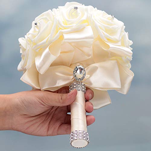 WIFELAI-A Ivory Cream Bouquet for Bride Bridesmaids with Diamond Soft Ribbons Artificial PE Rose Bridal Holding Flowers for Wedding, Party and Church(Dia:8.26inchH:10inch Ivory W2018)…