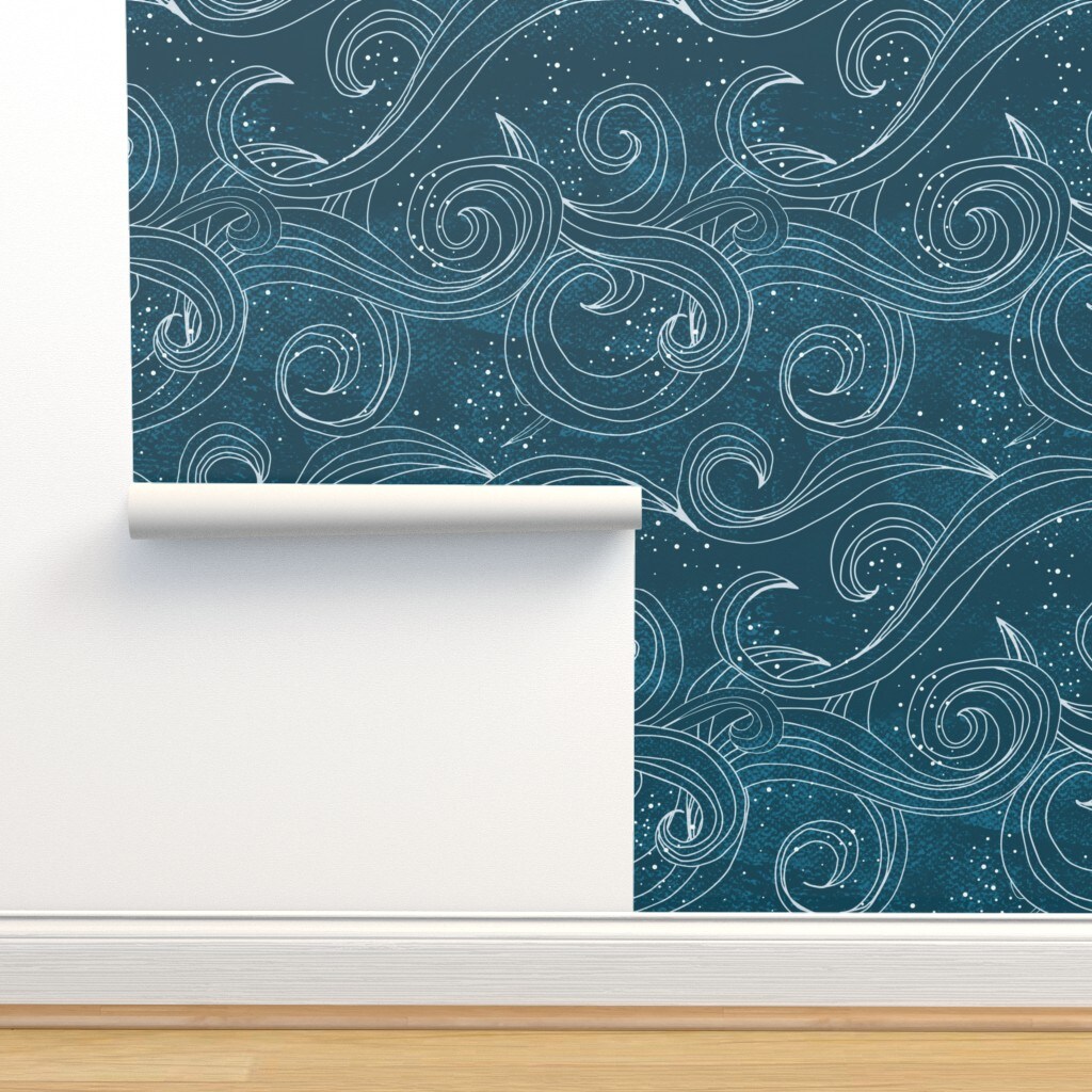 Wild Waves Mermaid Ocean Sea Whimsical Abstract Midnight Magical Custom Removable Wallpaper by Spoonflower Peel & Stick Wallpaper 2FT Wide