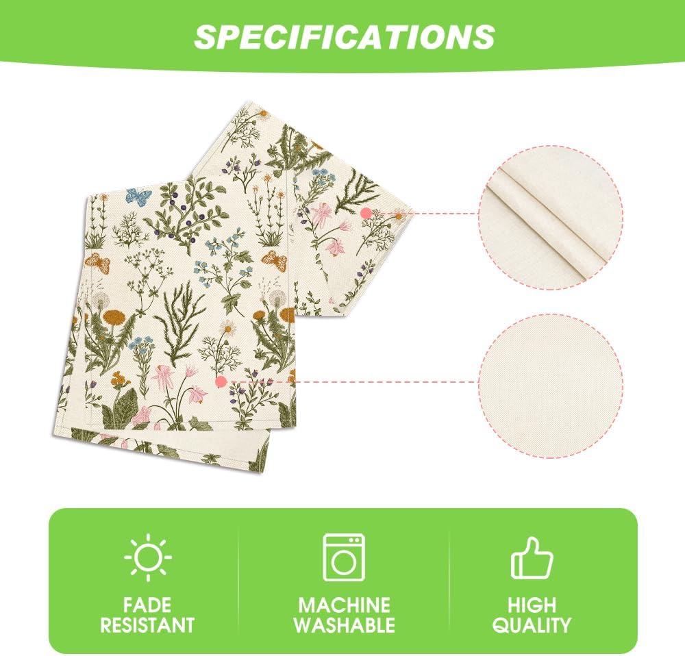 Wildflowers Floral Spring Table Runner, Butterfly Seasonal Summer Kitchen Dining Table Decoration for Home Party Decor 13x90 Inch