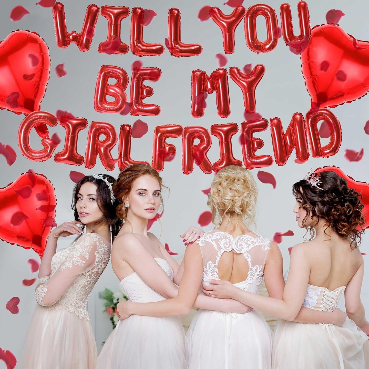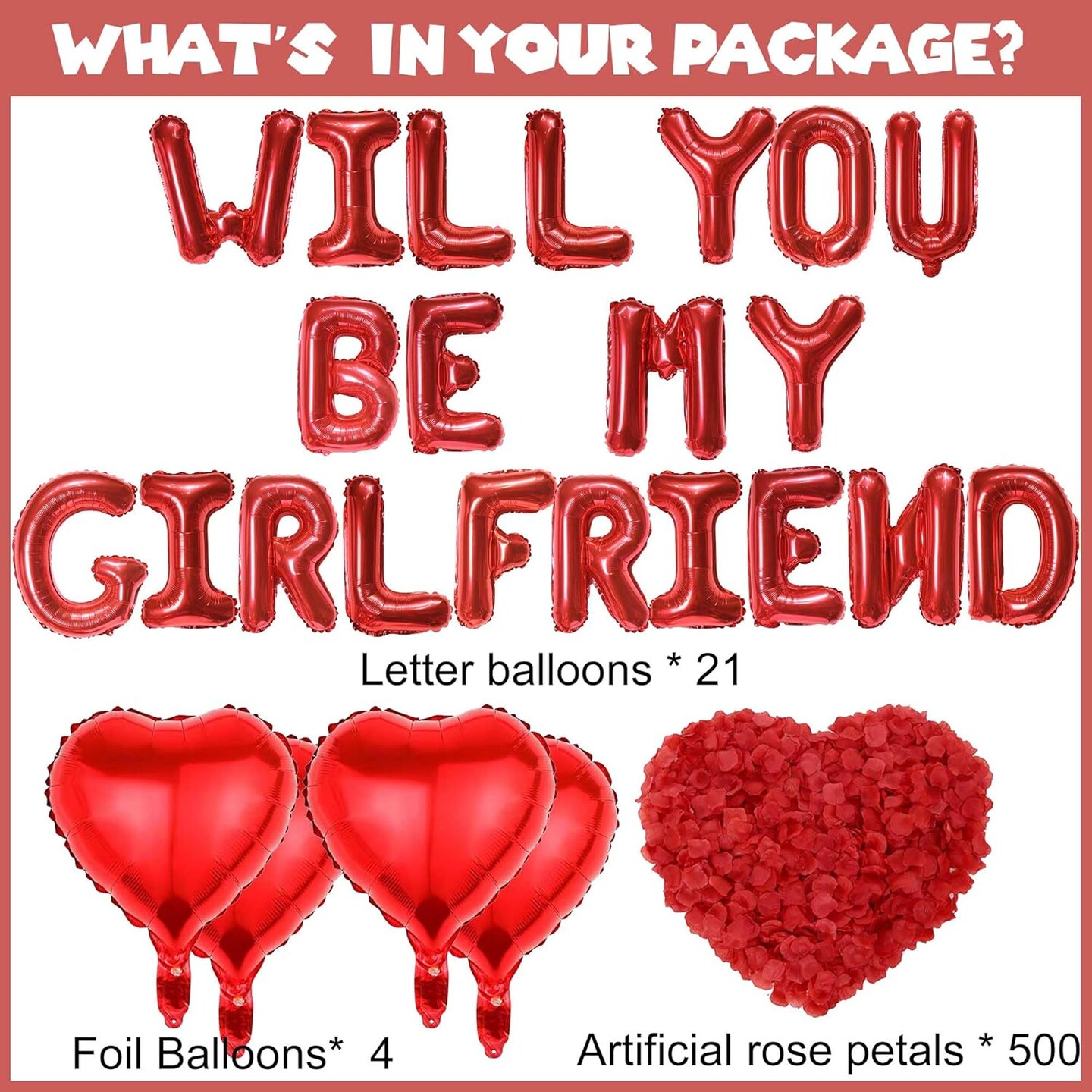 Will You Be My girlfriend - 525 Pcs Balloons Decorations Kit Heart Letter Foil Balloons Red Rose Petals For Girls Women Romantic Special Night Engagements Proposals Valentines Day Party Supplies