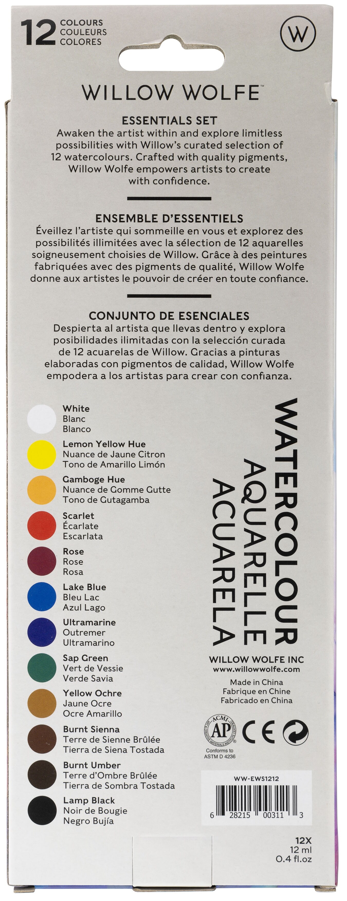 Willow Wolfe Essential Watercolor Paint Set 12ml 12/Pkg-Assorted Colors