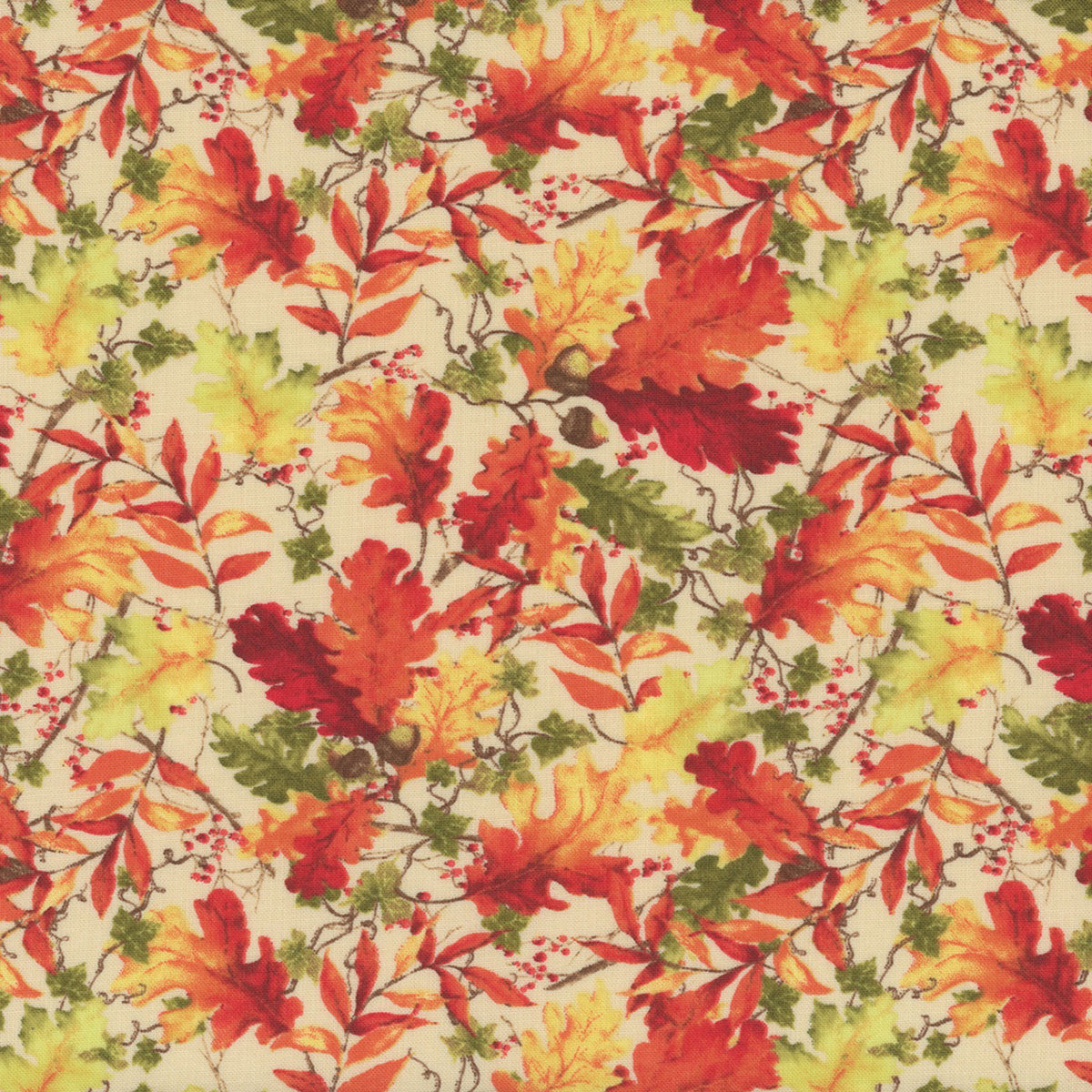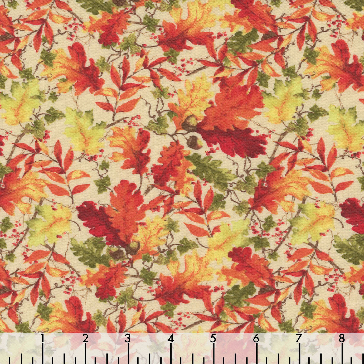 Wilmington Prints Thanksgiving Tossed Leaves Cream Gnome-kin Patch 100% Cotton Fall Autumn