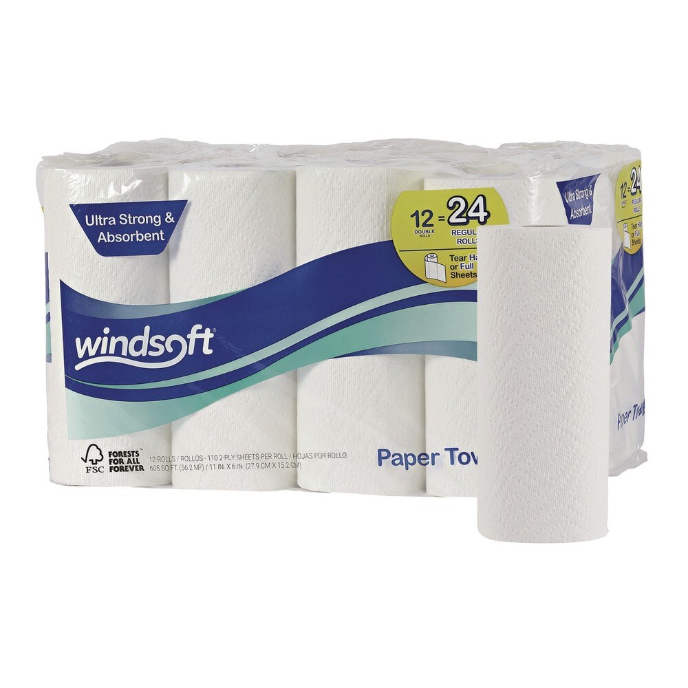 Windsoft 11 in. x 6 in. 2-Ply Premium Kitchen Roll Towels - White (110/Roll, 12 Rolls/Carton)