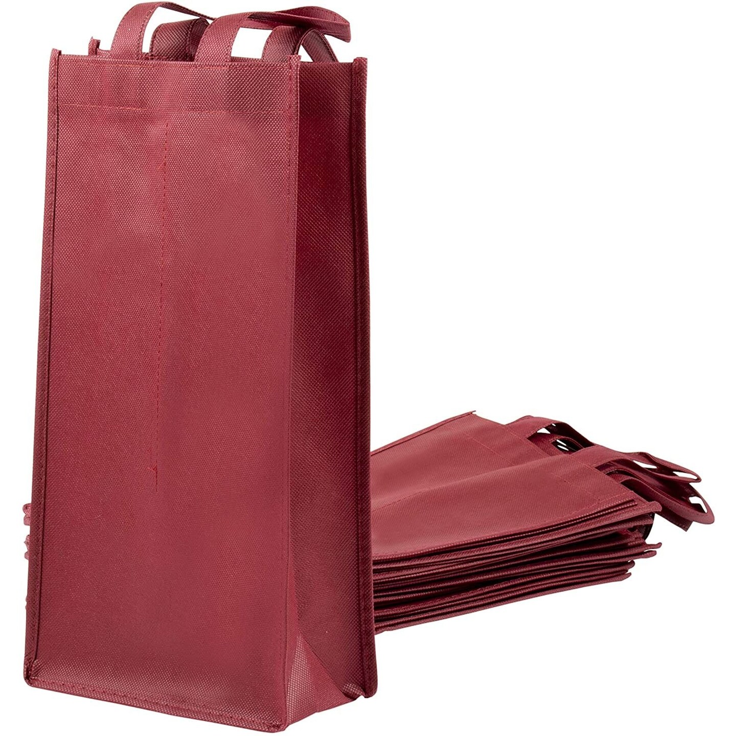 Wine Bag with Handles for Gifts, Dinner Parties, Burgundy Carrying Tote (10 Pack)