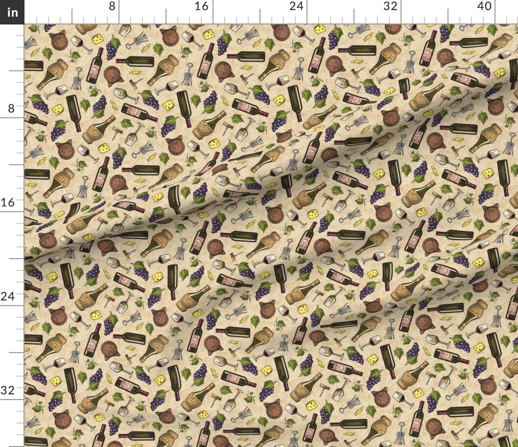 Wine Leaves Style Cheese Drink Custom Printed Fabric by Spoonflower Various Fabrics by the Yard or Fat Quarter