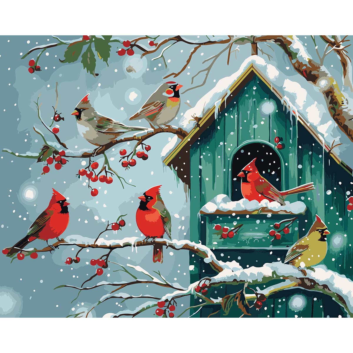 Winnie s Picks Snowy Cardinal Cottage Paint by Number Kit