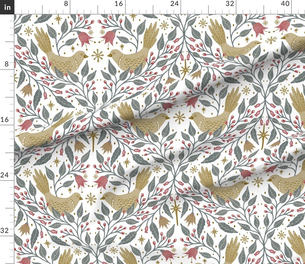 Winter Floral Festive Holiday Christmas Damask Birds Berries Folk Art Winter Holidays Red Green Dots Stars Christmas Folk Art Classic Christmas Custom Printed Fabric by Spoonflower Various Fabrics by the Yard or Fat Quarter