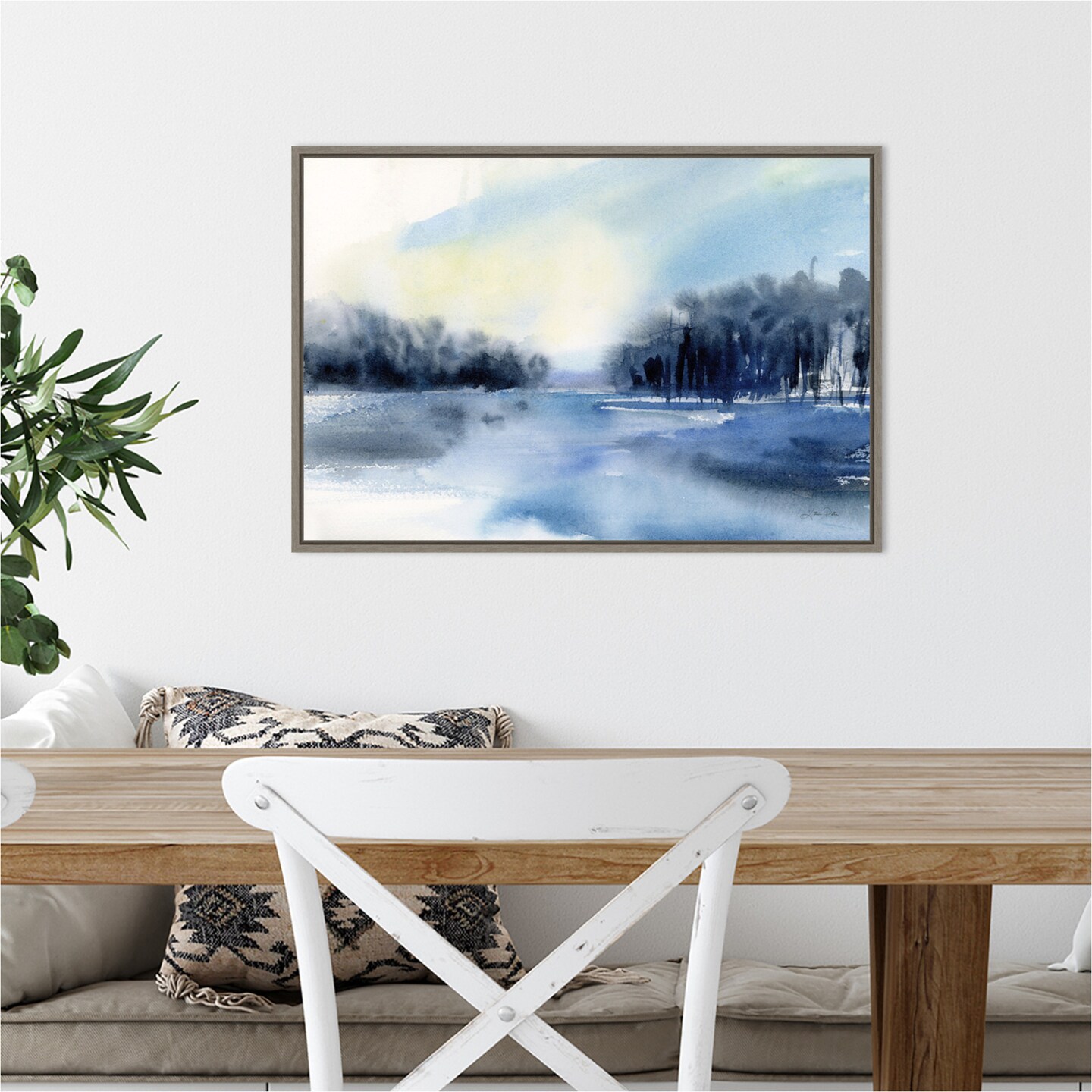 Winter River by Katrina Pete 23-in. W x 16-in. H. Canvas Wall Art Print Framed in Grey