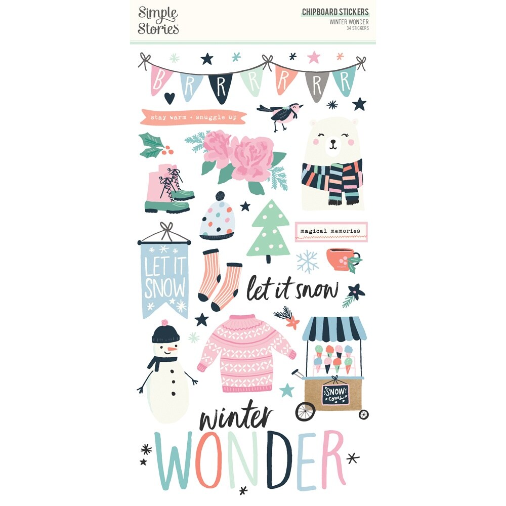 Winter Wonder Chipboard Stickers 6"X12"-34/Pkg