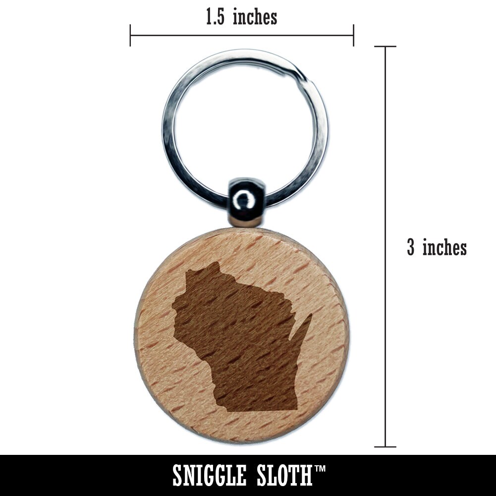 Wisconsin State Silhouette Engraved Wood Round Keychain Tag Charm