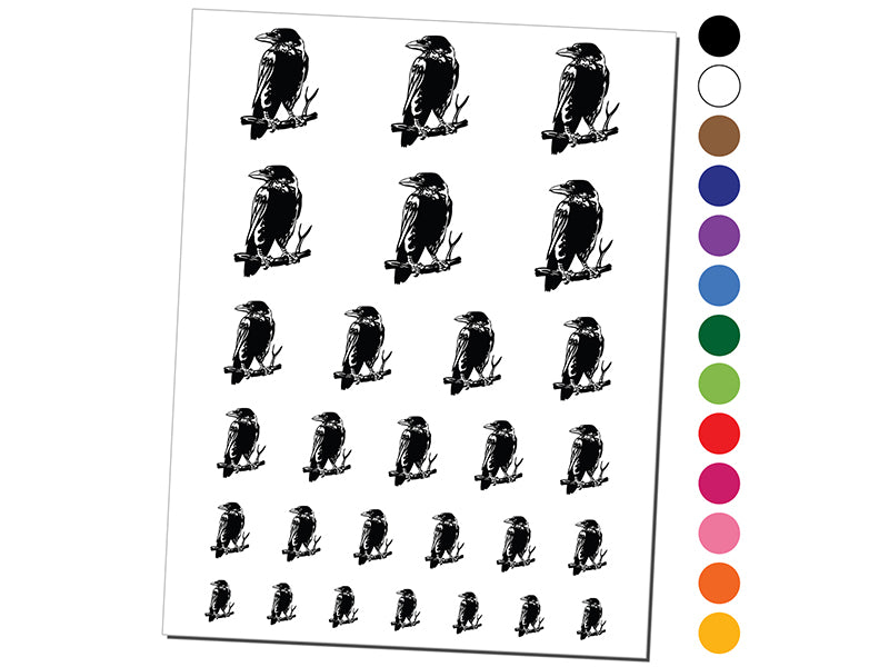 Wise Black Raven Crow Perched on Branch Temporary Tattoo Water Resistant Fake Body Art Set Collection