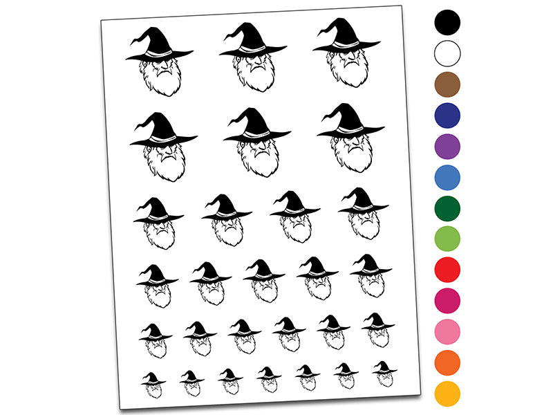 Wise Wizard Old Man Beard Hat Temporary Tattoo Water Resistant Fake Body Art Set Collection