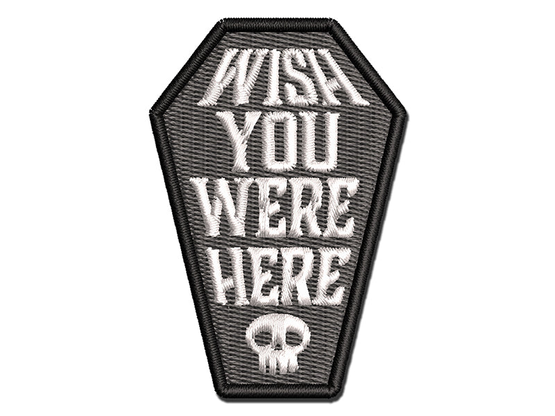 Wish You Were Here Coffin Skull Dark Humor Multi-Color Embroidered Iron-On or Hook & Loop Patch Applique