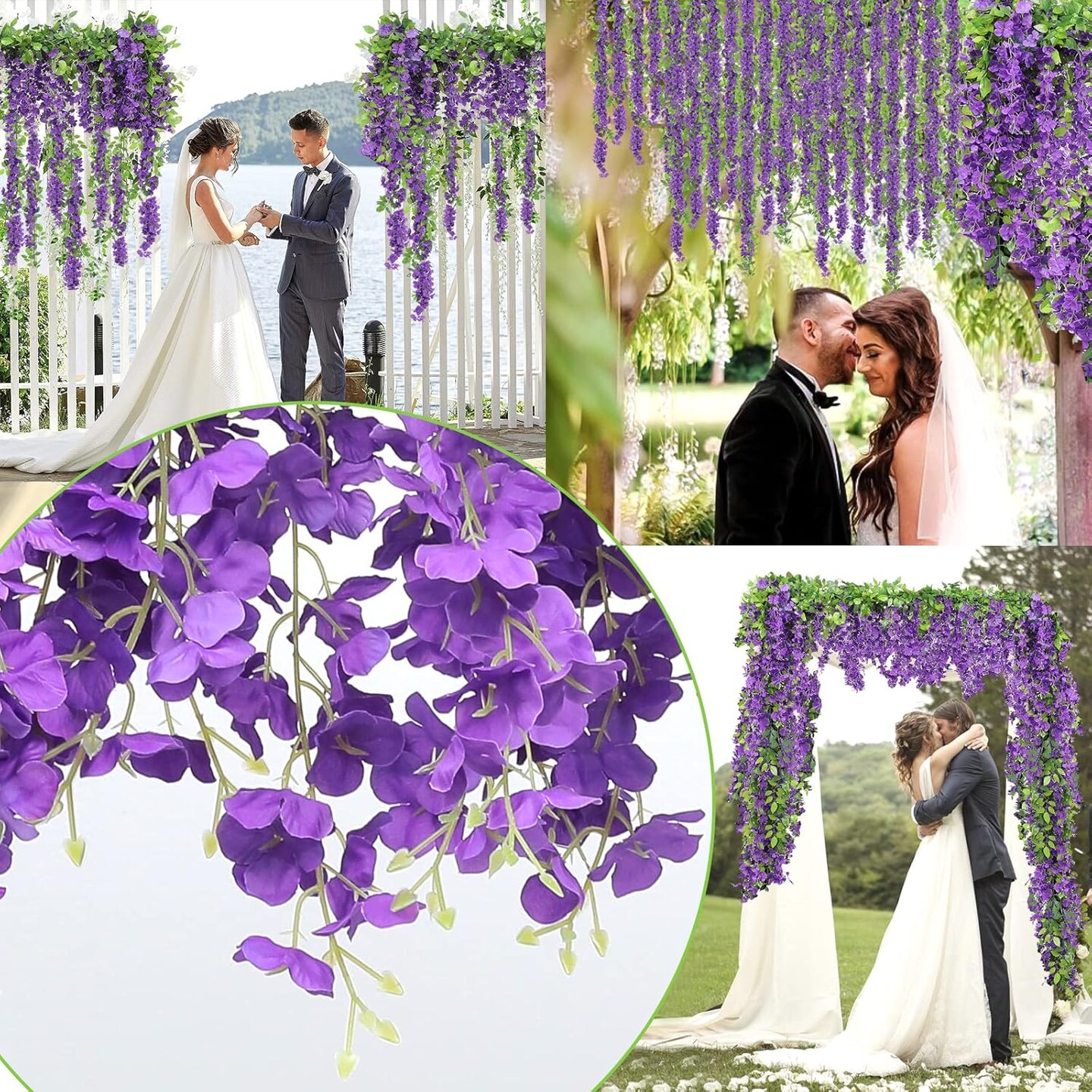 Wisteria Artificial Flowers Garland, 5Pcs Total 36FT