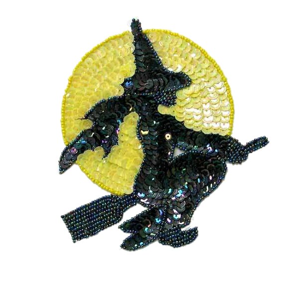 Witch And Moon Beaded Sequin Applique/Patch