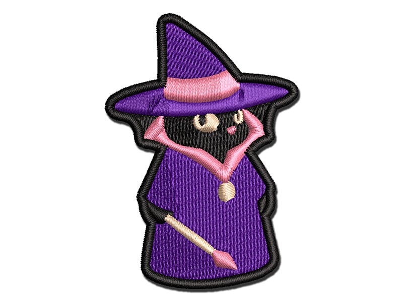 Witch Cat with Wand Halloween Multi-Color Embroidered Iron-On or Hook & Loop Patch Applique