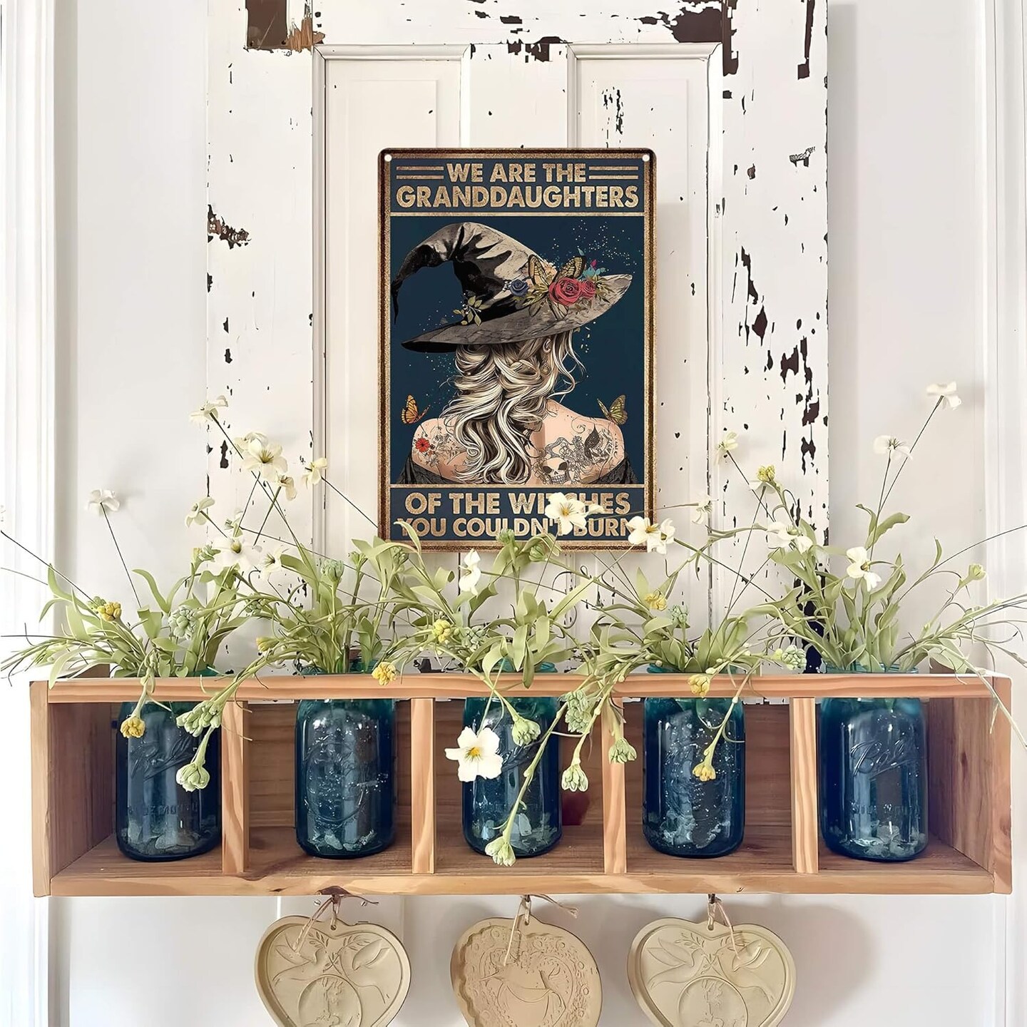 Witch Halloween Tin Sign – “We Are The Granddaughters of The Witches You Couldn't Burn” Vintage Metal Wall Art, 8x12 Inches, Witchy & Gothic Home Decor