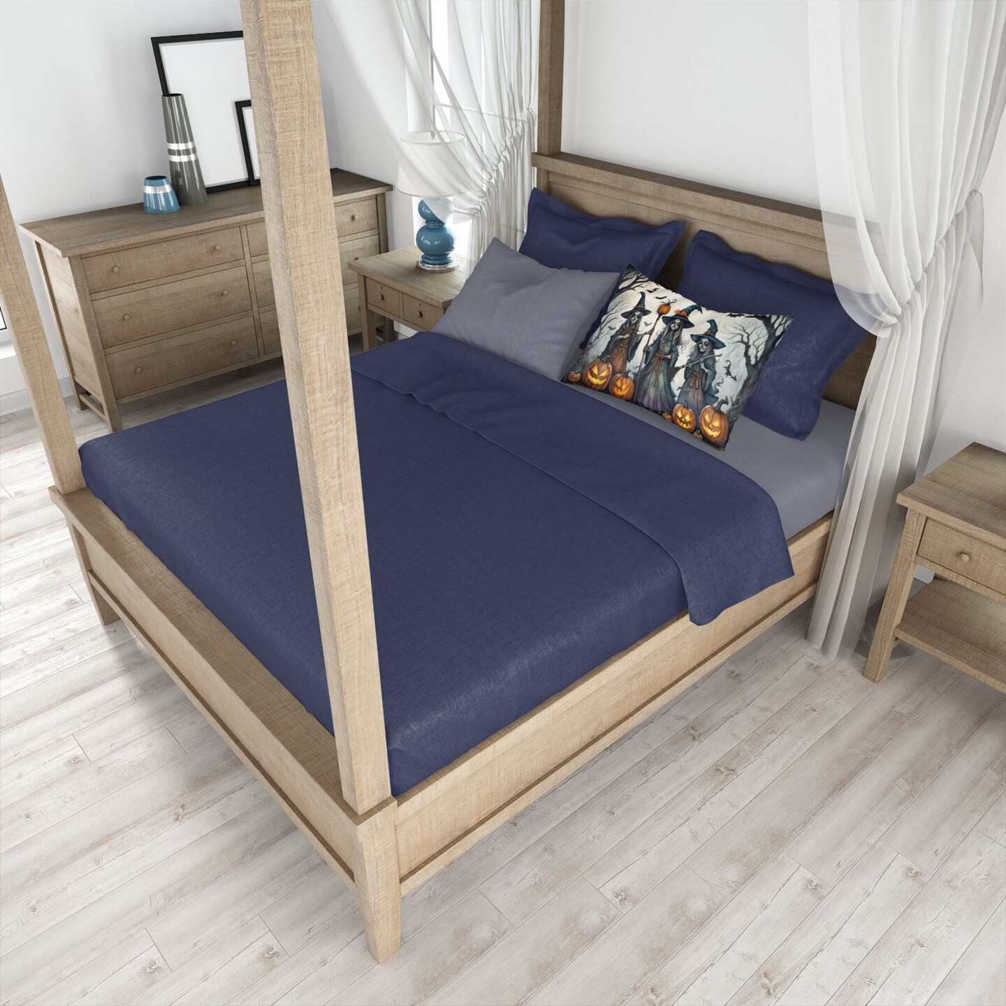 Witches Spooky Halloween Standard Pillowcase Lightweight Black & Orange Decorative Artwork