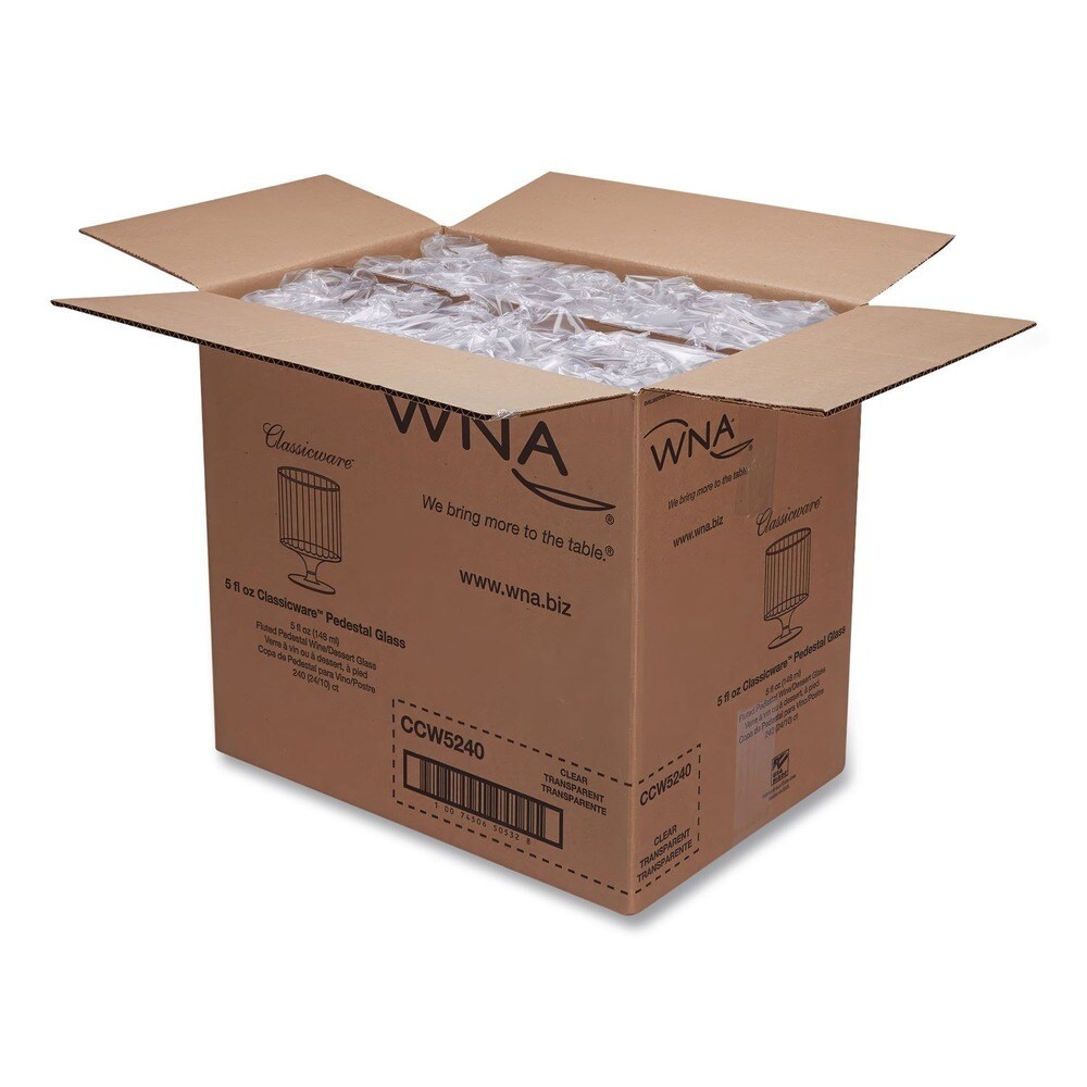 WNA 5 oz. Fluted Classic Crystal Plastic Wine Glasses on Pedestals - Clear (10/Pack, 24 Packs/Carton)