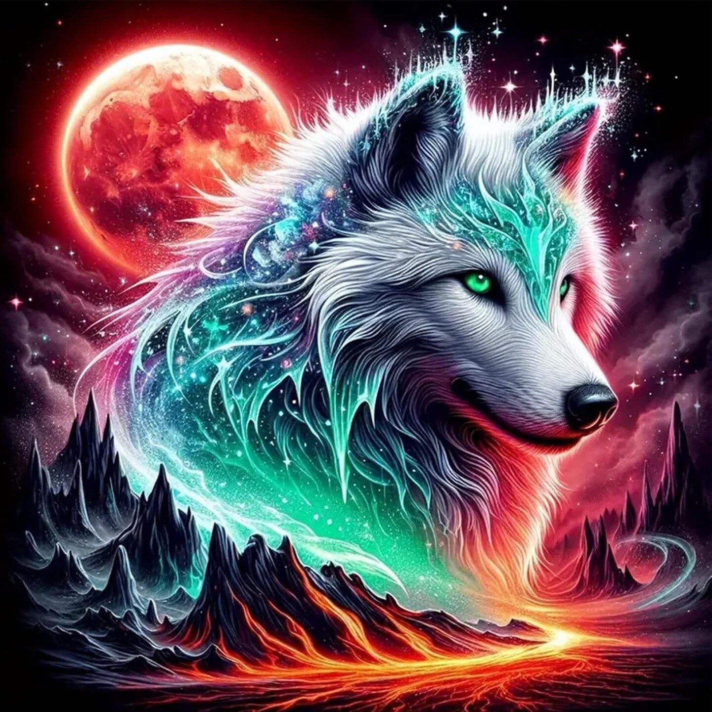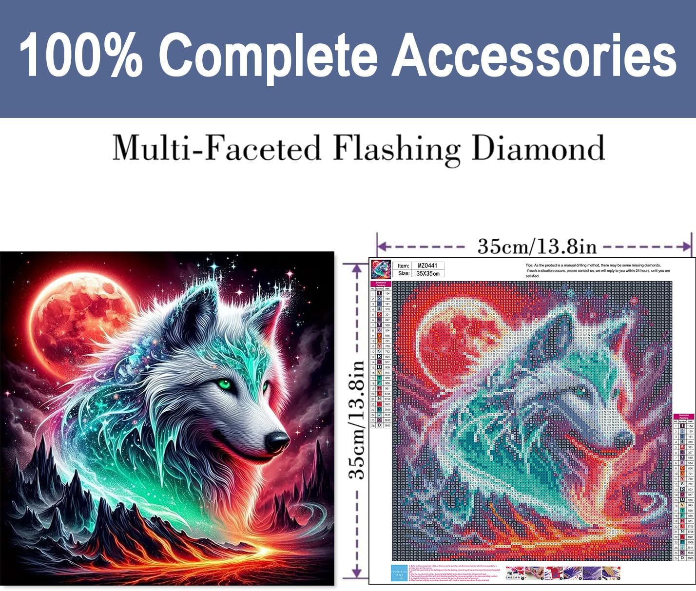 Wolf Diamond Art Kits for Adults-Moon Diamond Painting Kits for Beginners, DIY Wolf Gem Art Kits for Adults for Gift Home Wall Decor 14X14inch