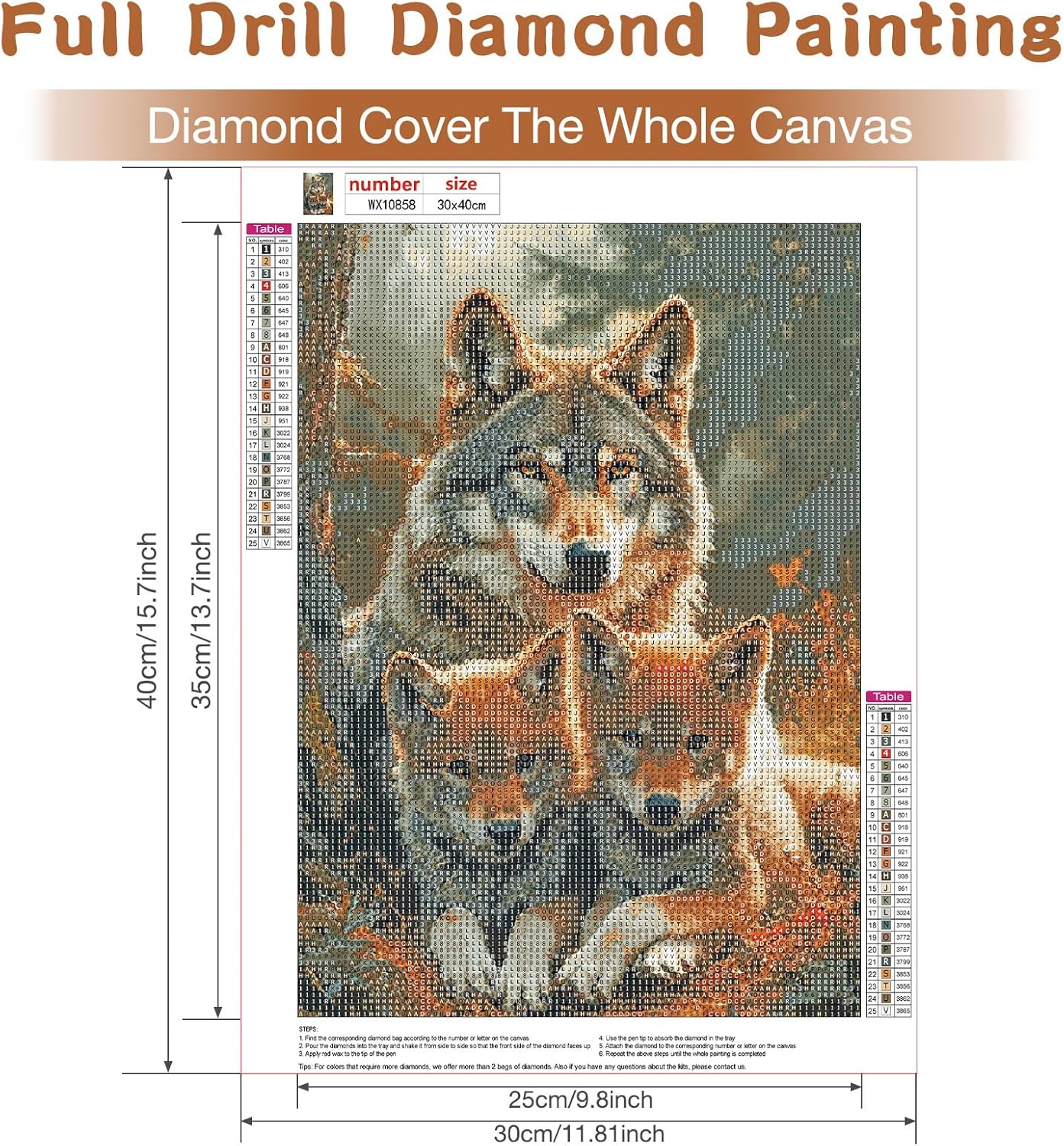Wolf Family Diamond Painting Kit (Wolf) 12×16 inch