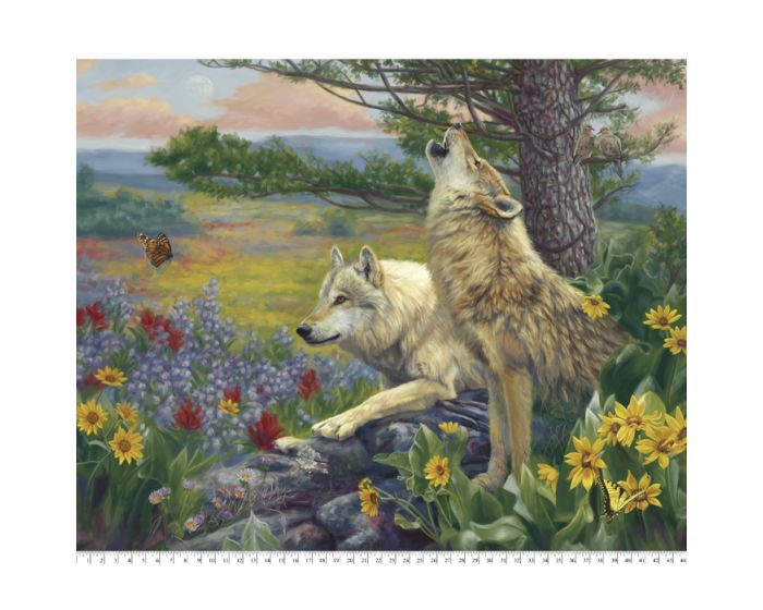 Wolves Wildflowers Digital Cotton Print Fabric Panel | 100% Cotton | Sold By the Panel
