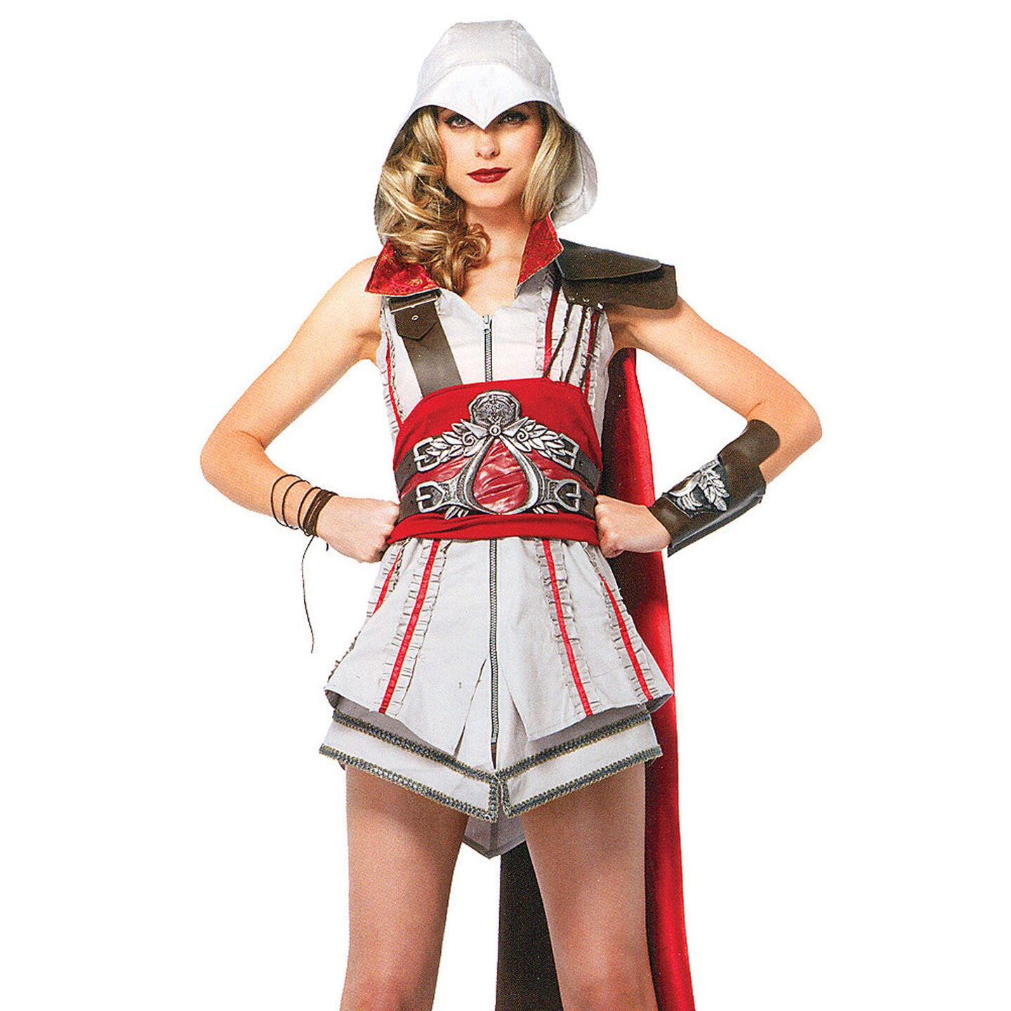 Women's Assassin's Creed Ezio Halloween Costume with Hooded Dress Cape Belt and Arm Wraps