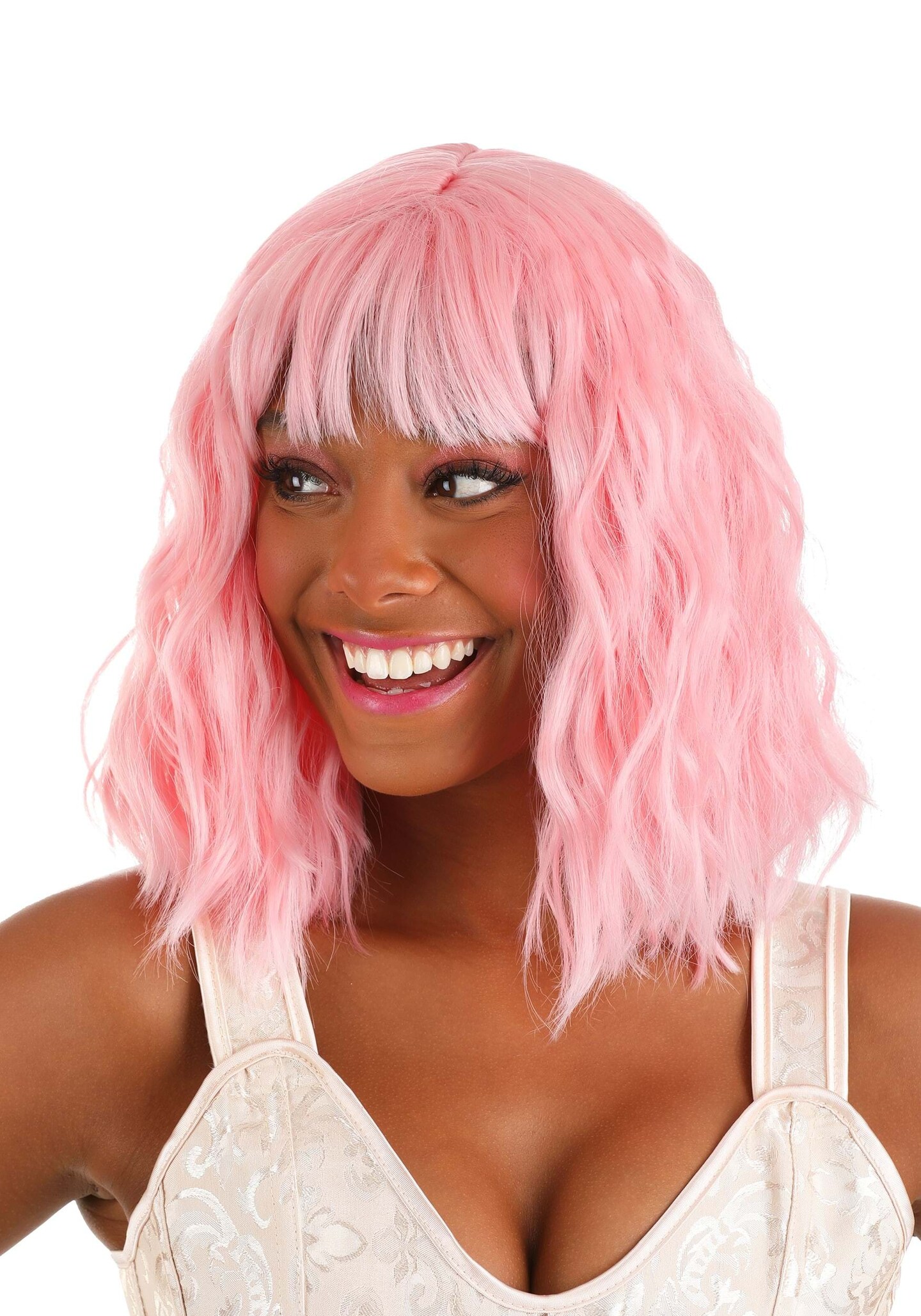 Women's Light Pink Wavy Wig