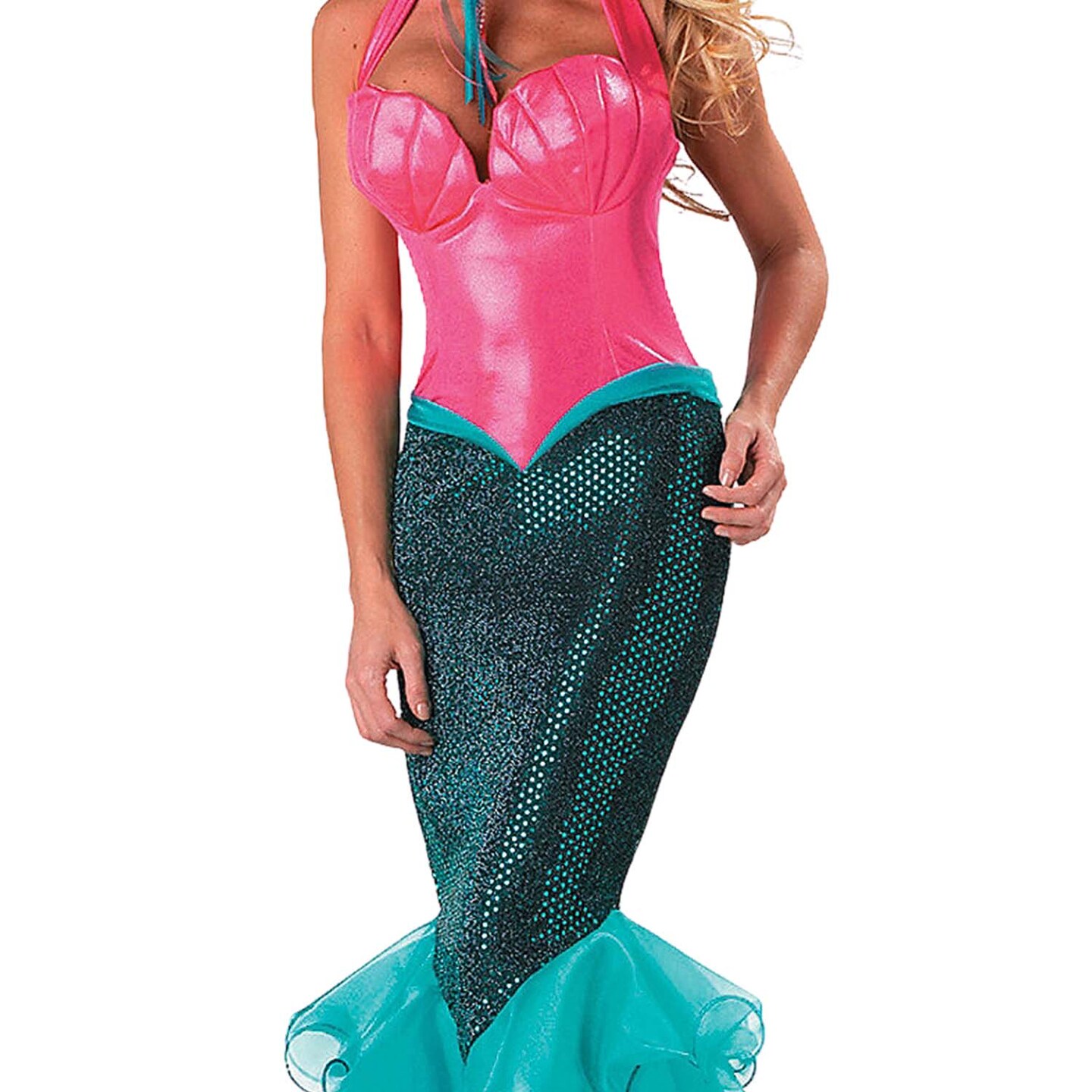 Women's Mermaid Costume Fitted Shimmer Corset Gown with Sequin Skirt and Starfish Headpiece