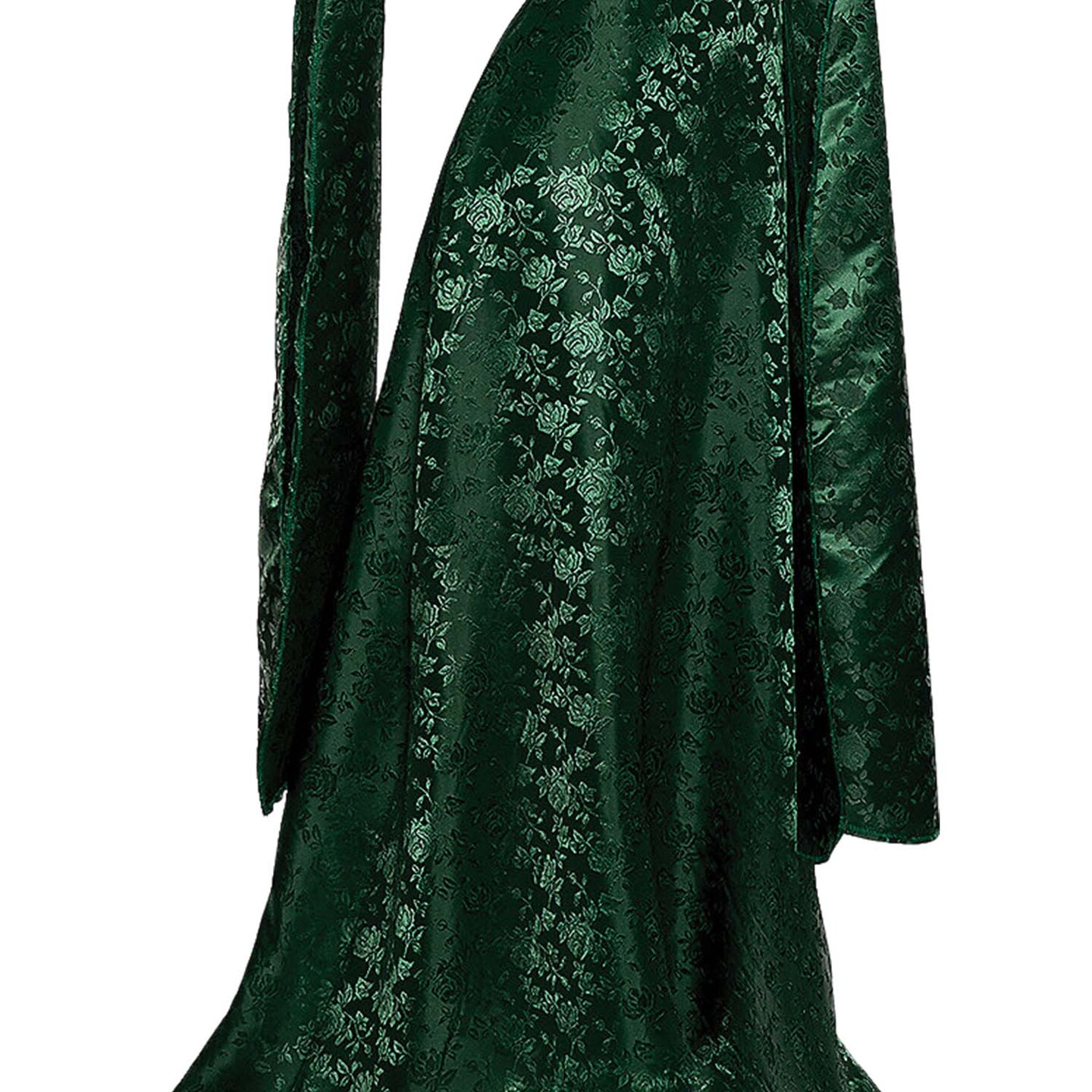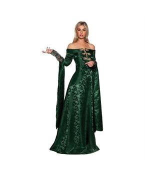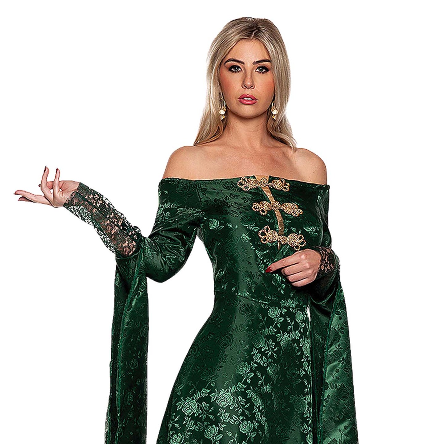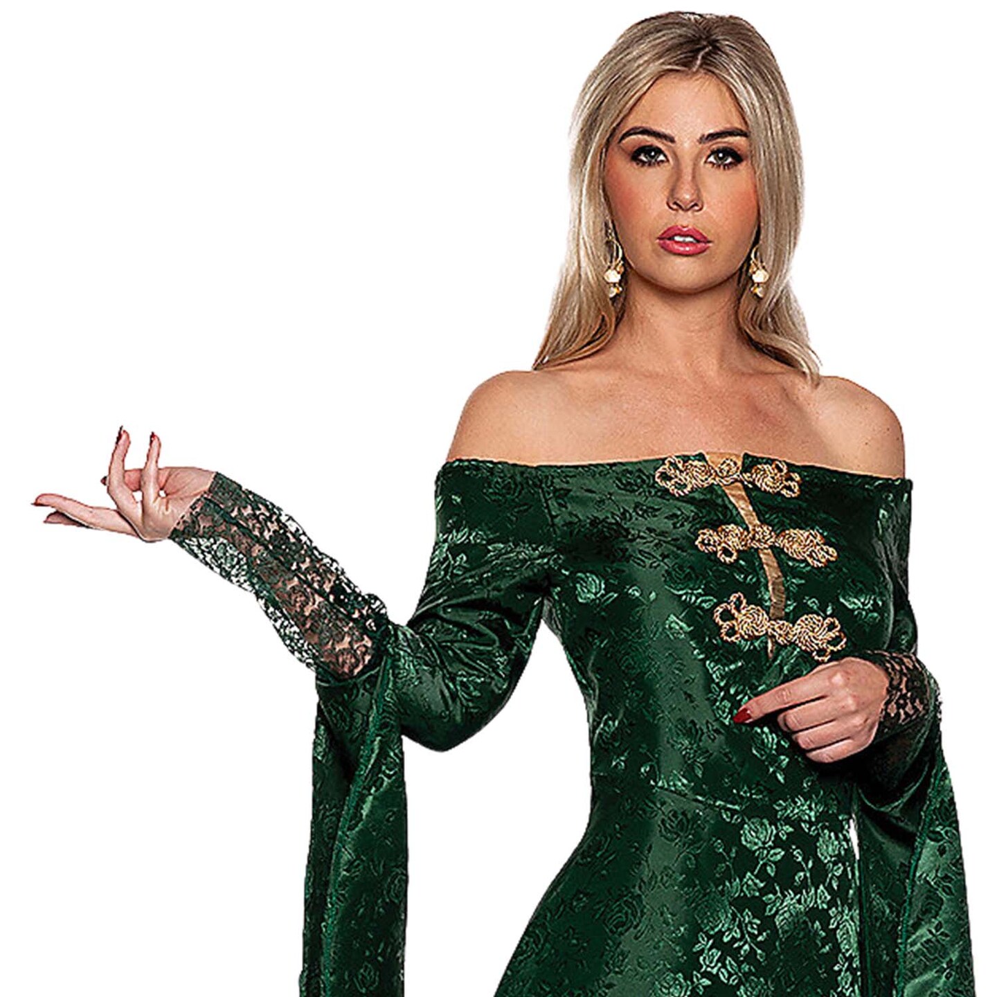 Women's Renaissance Queen Costume Emerald Green Gown with Lace Accents and Braided Closures