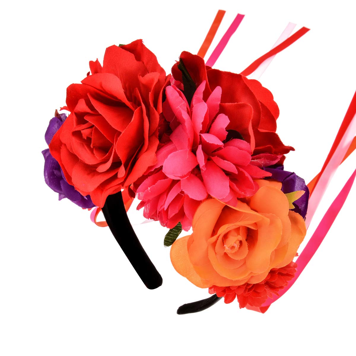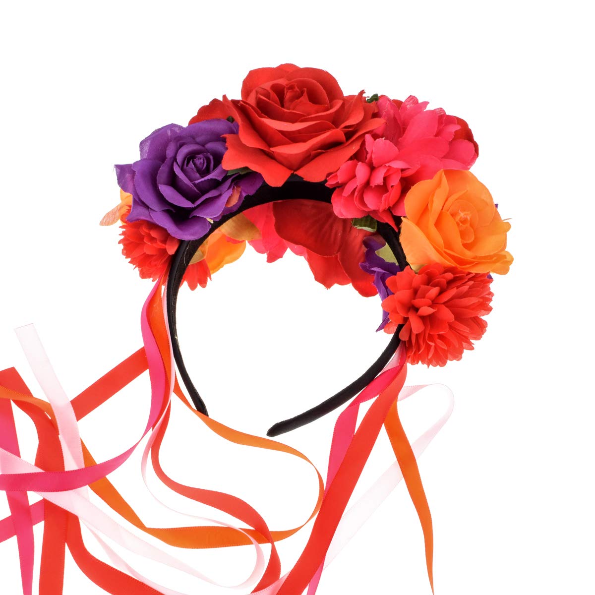 Women Day of the Dead Flower Crown Festival Headband Rose Mexican Floral Headpiece HC-23 (Red Purple