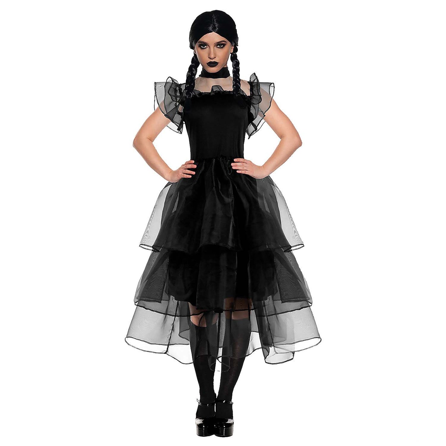 Women Gothic Prom Dress Halloween Costume Black Layered Outfit