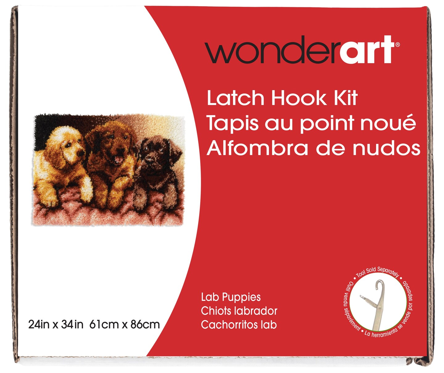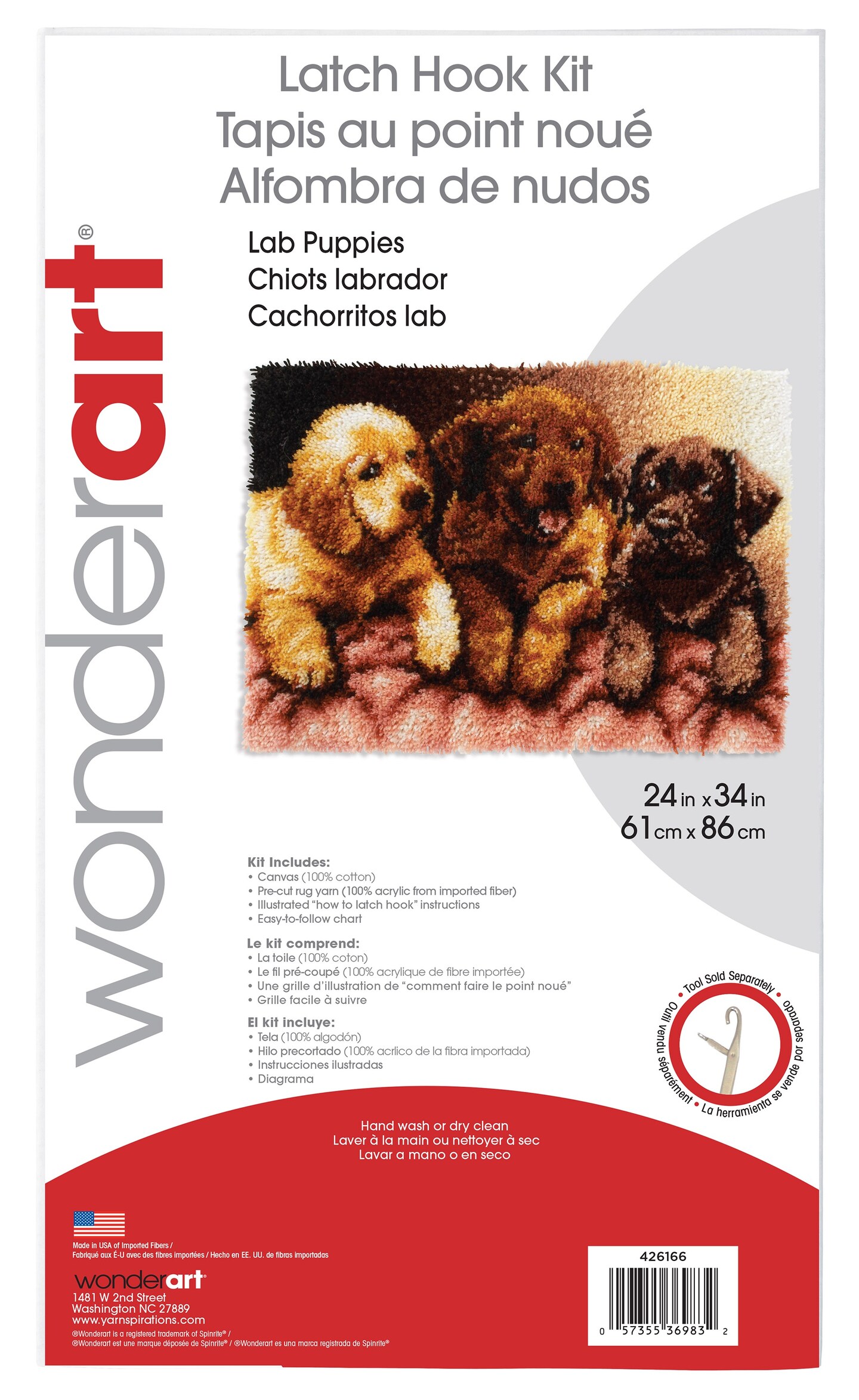 Wonderart Latch Hook Kit 24"X34"-Lab Puppies