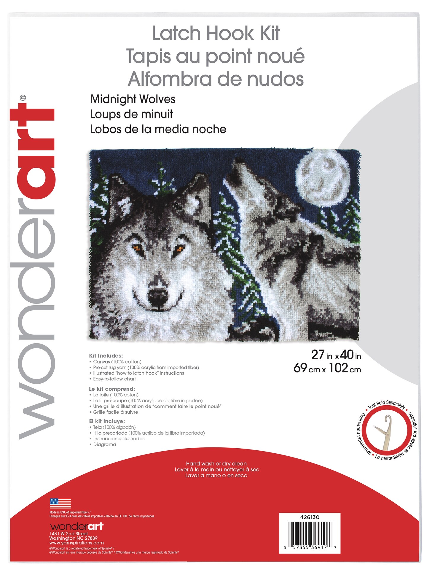 Wonderart Latch Hook Kit 27"X40"-Midnight Wolves