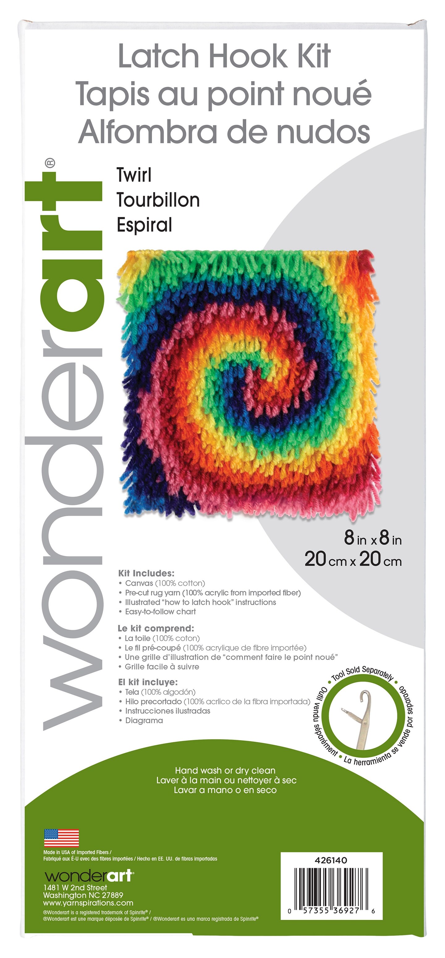 Wonderart Latch Hook Kit 8"X8"-Twirl
