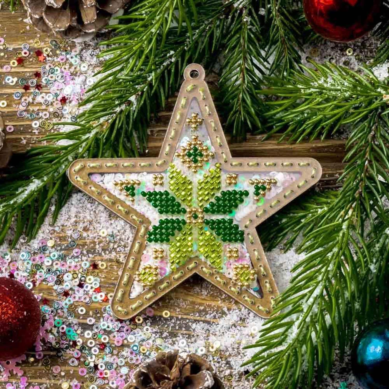 Wonderland Crafts Green & Gold Star Christmas Ornament Bead Embroidery Kit