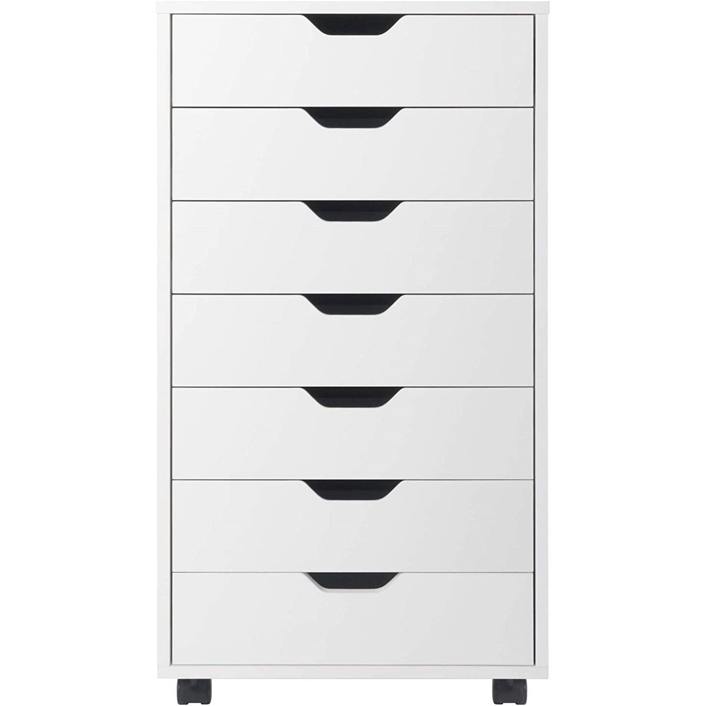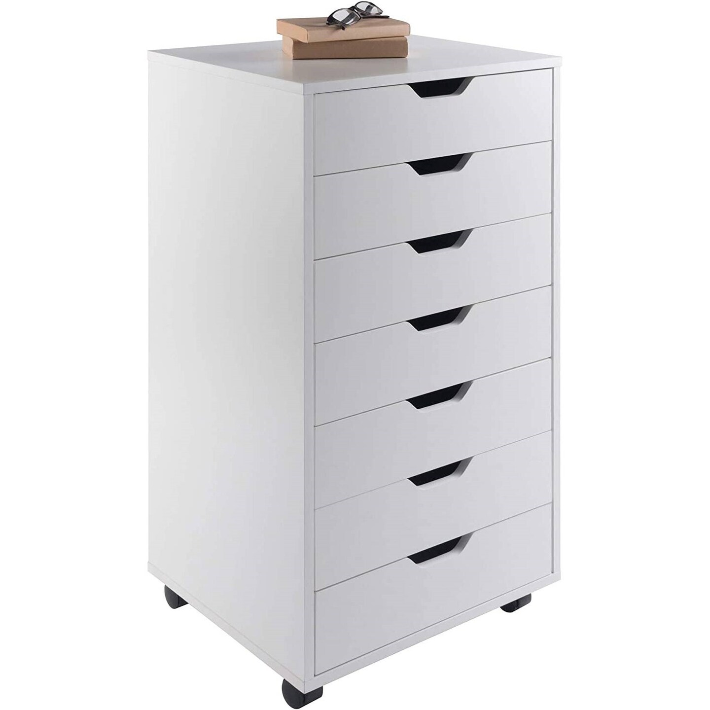 Wood 7-Drawer Storage Cabinet Chest with Casters and Lock